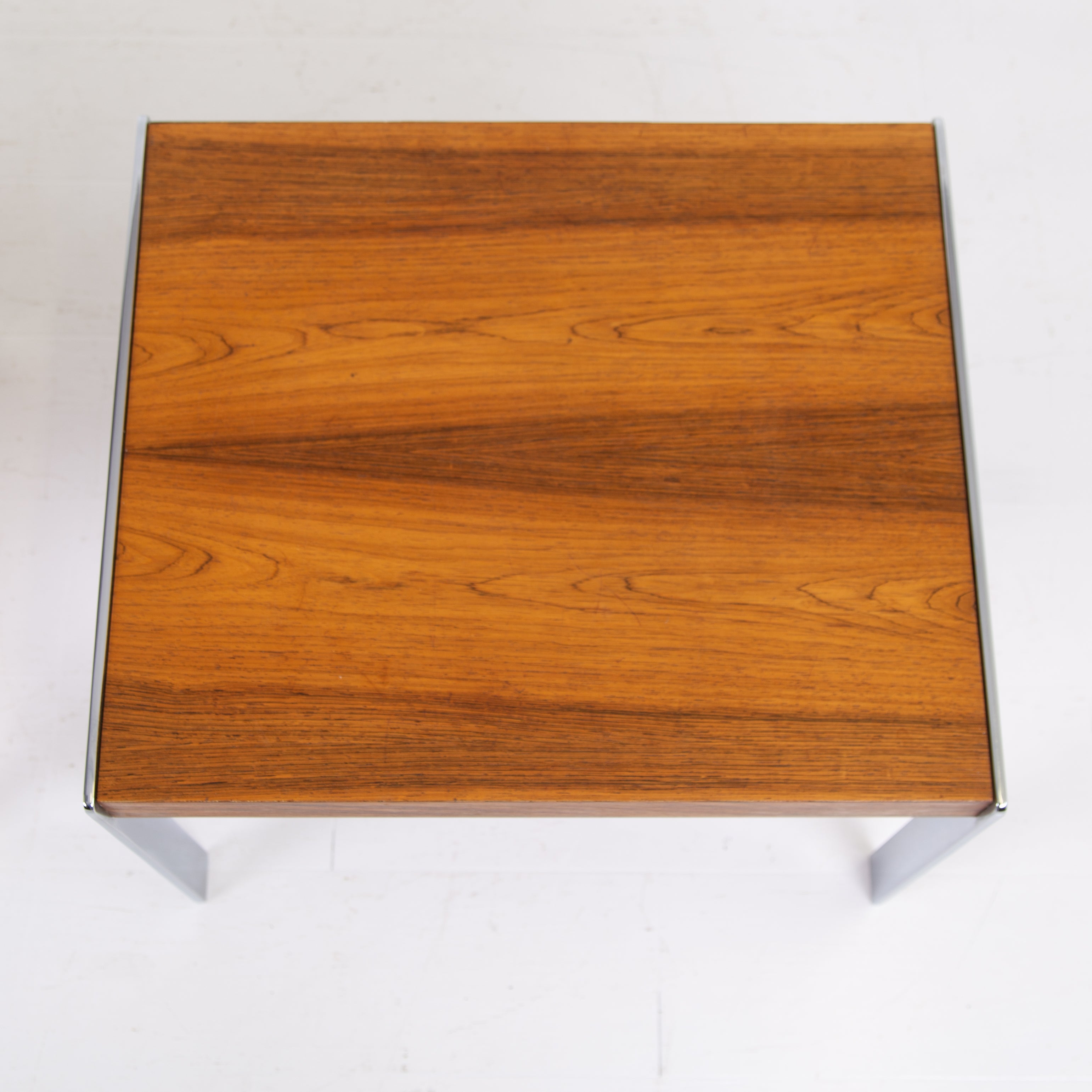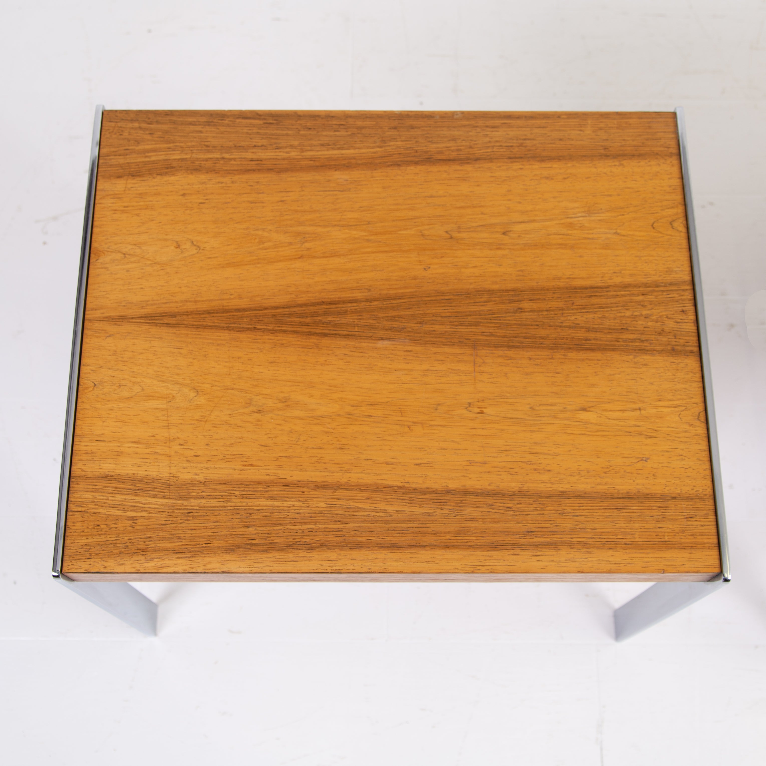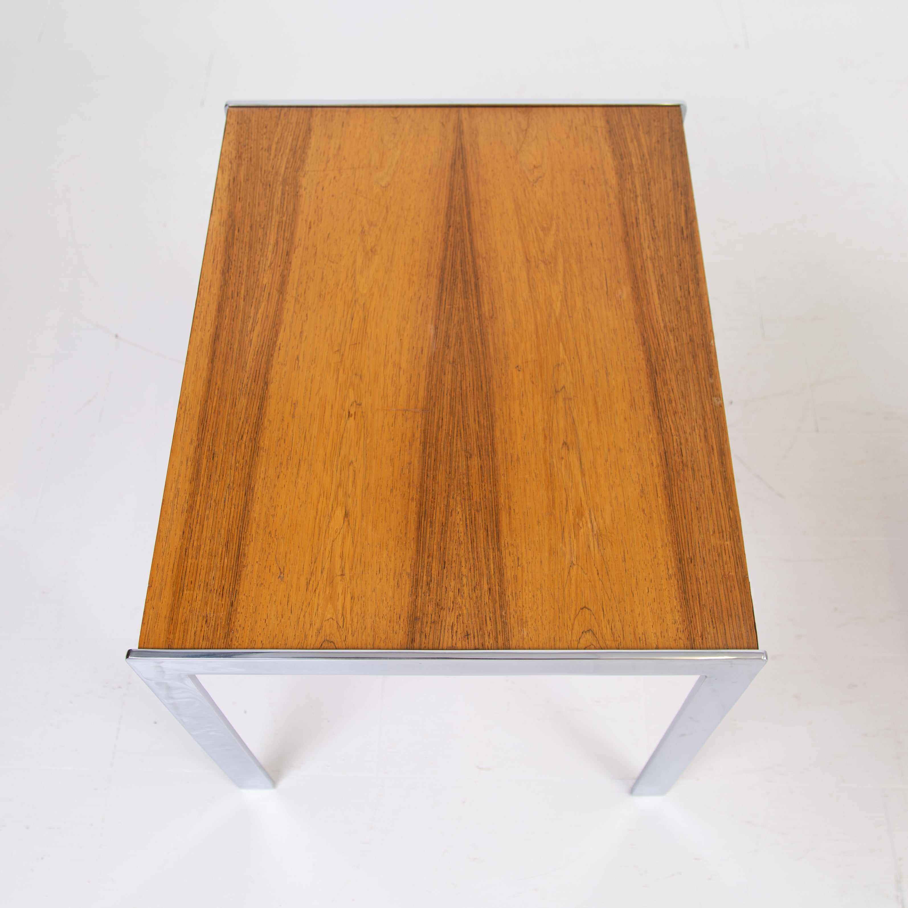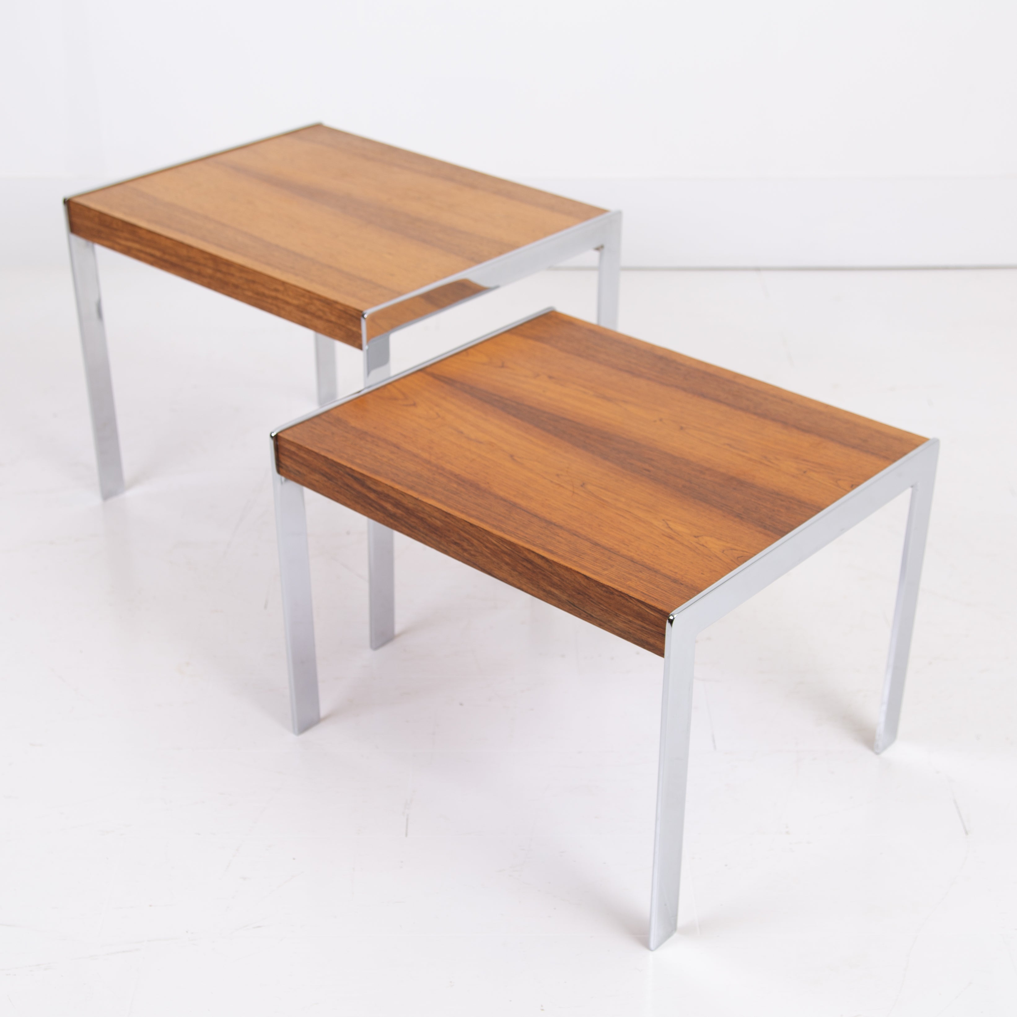Pair of Merrow Associates Rosewood and Polished Steel Coffee Tables