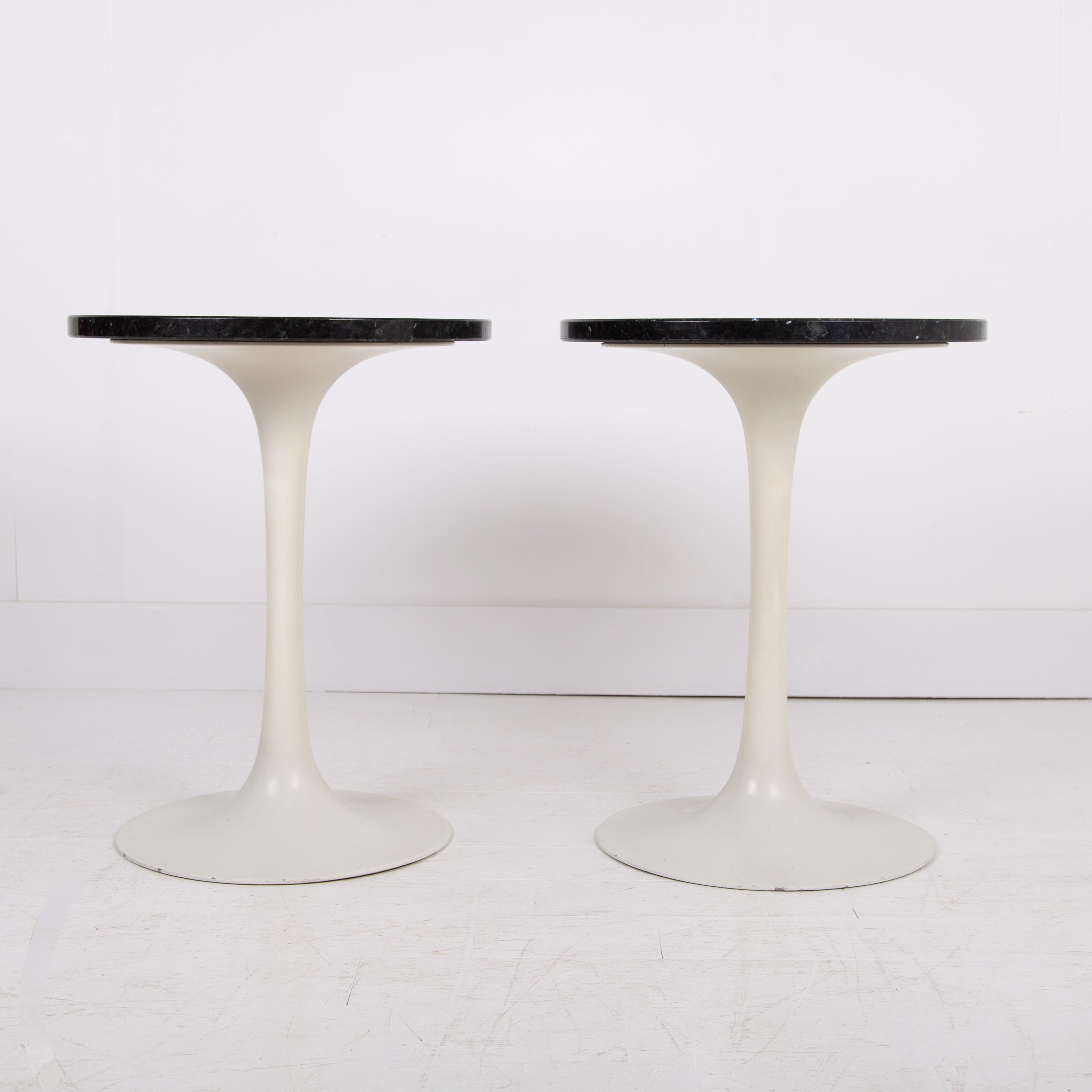 Pair of Mid Century Tulip Shaped Granite Topped Side Tables