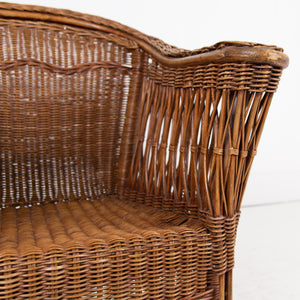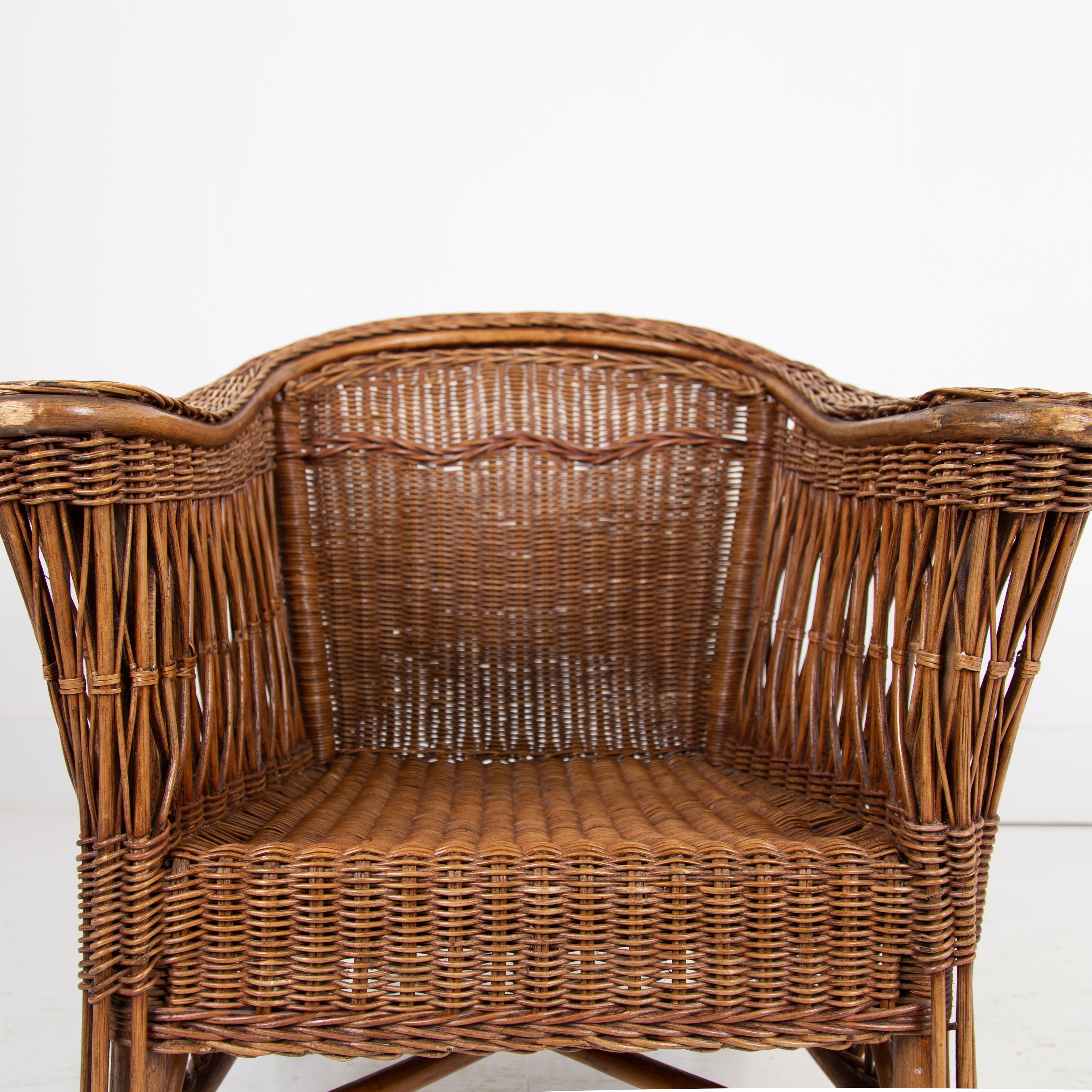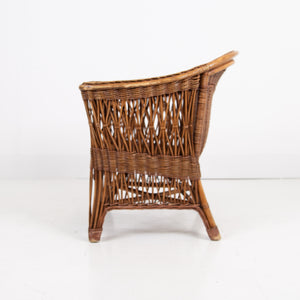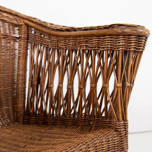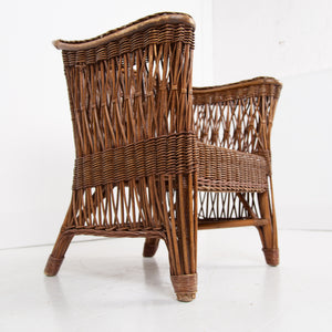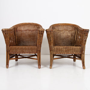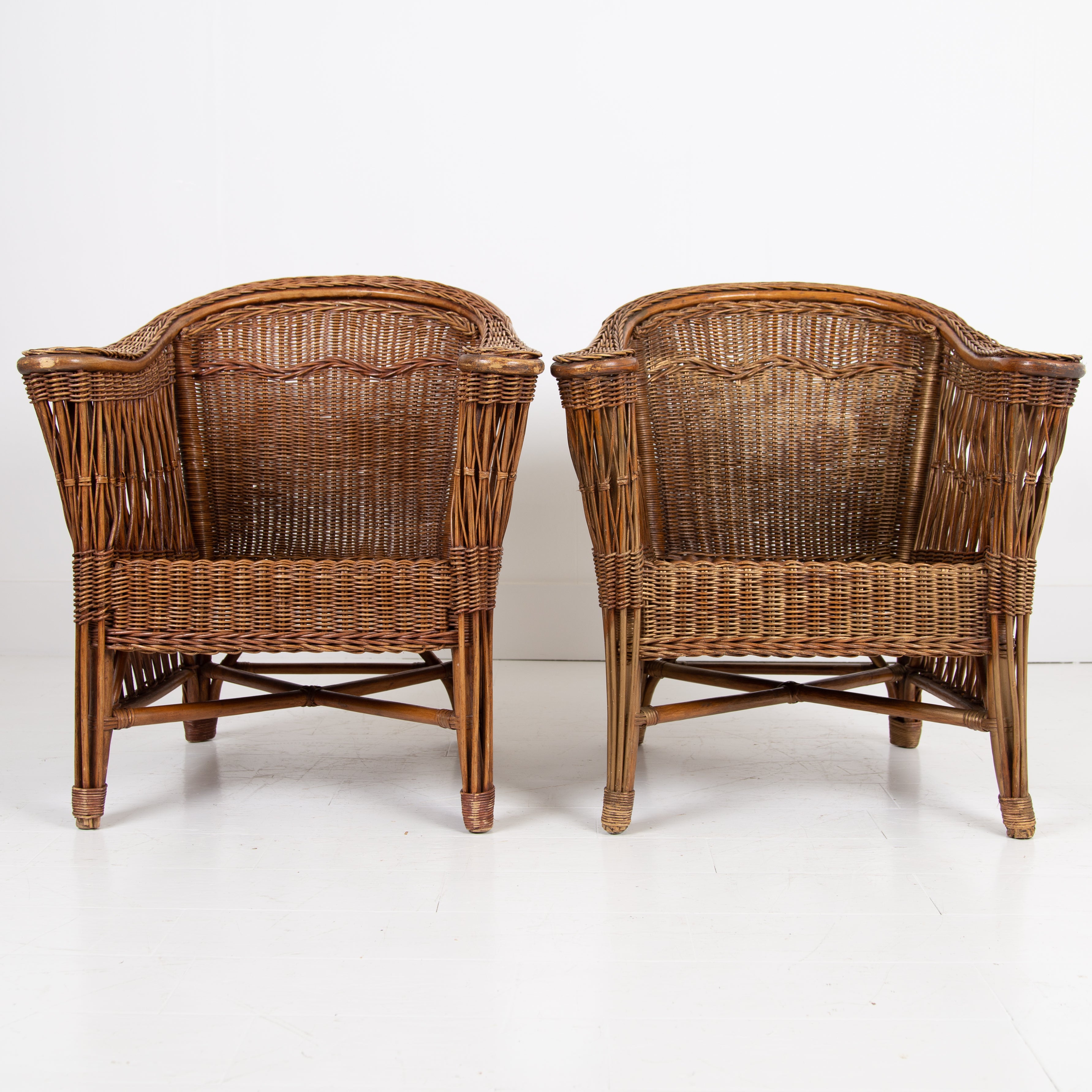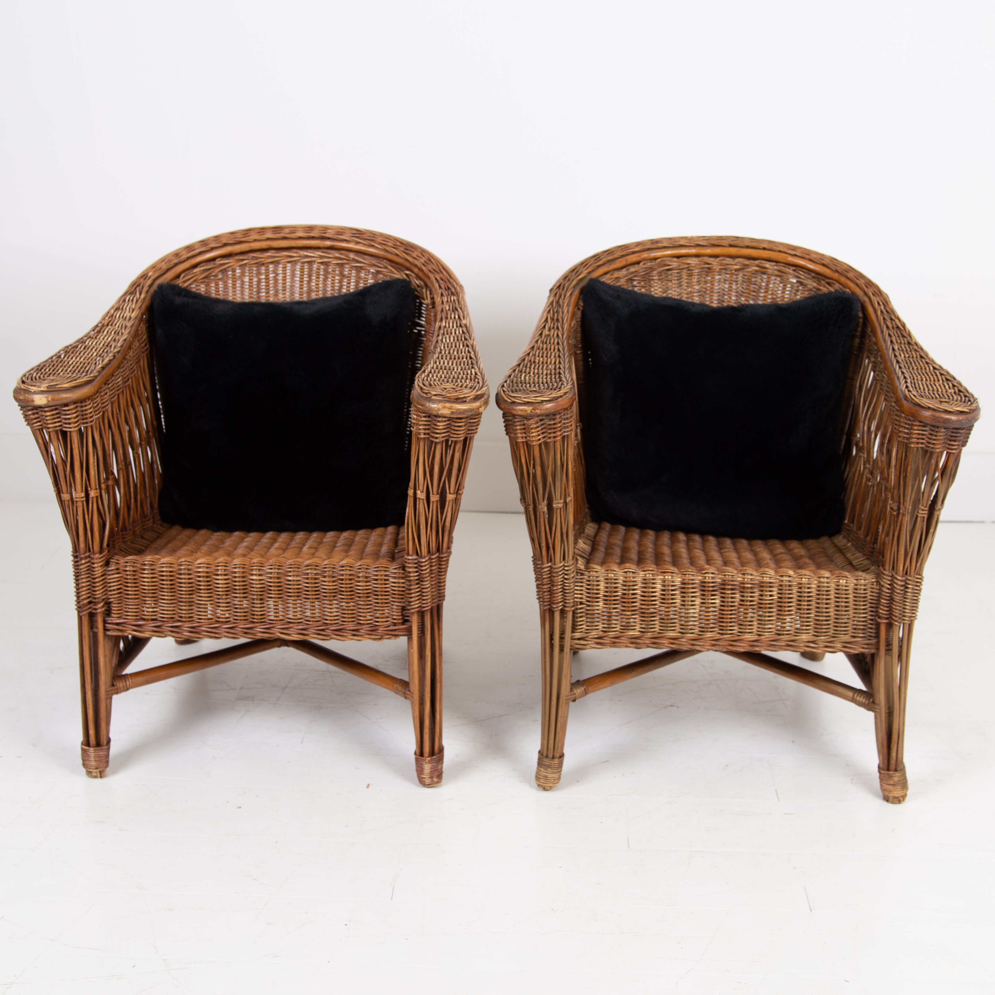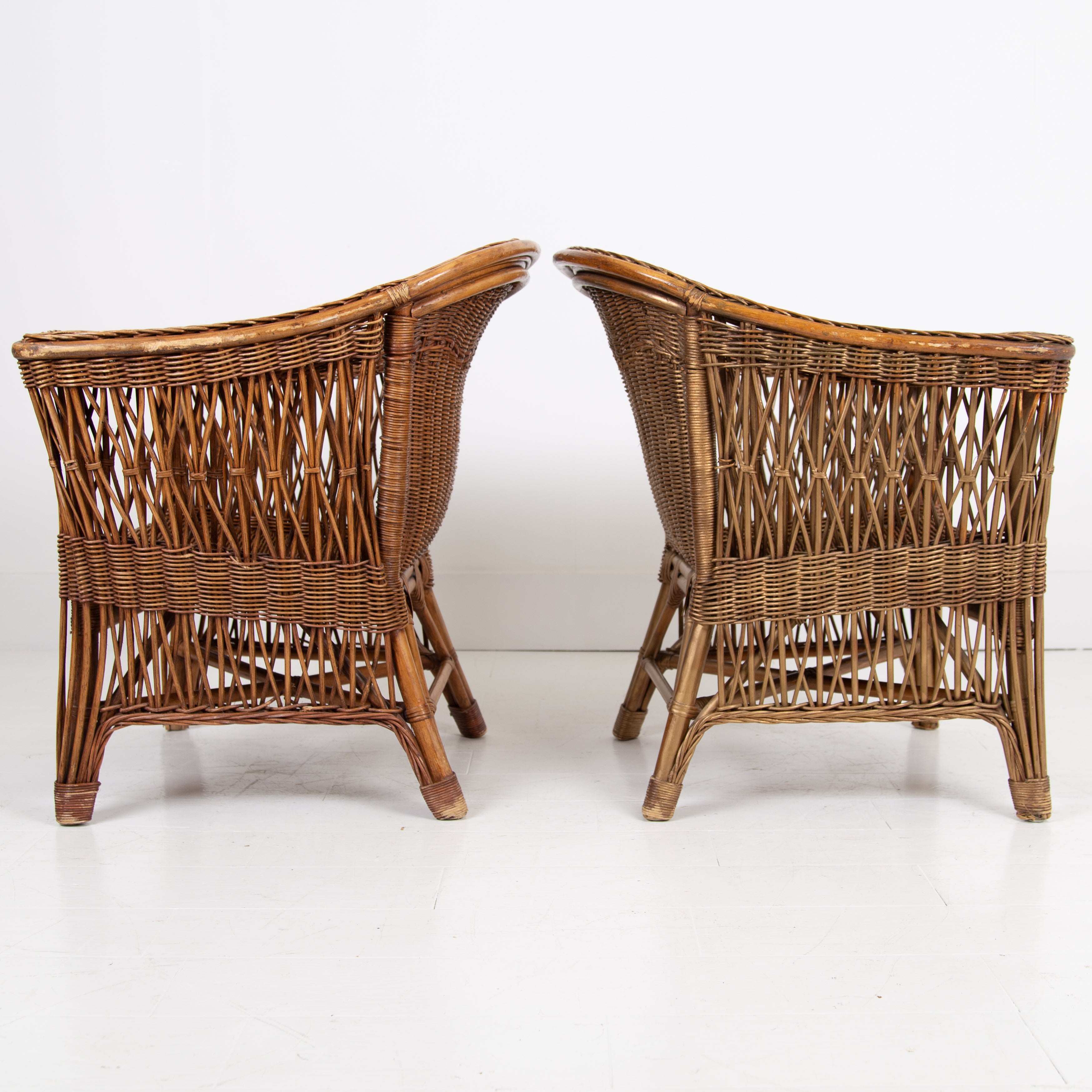 Pair of Mid Century Wicker Armchairs Garden Room Chairs