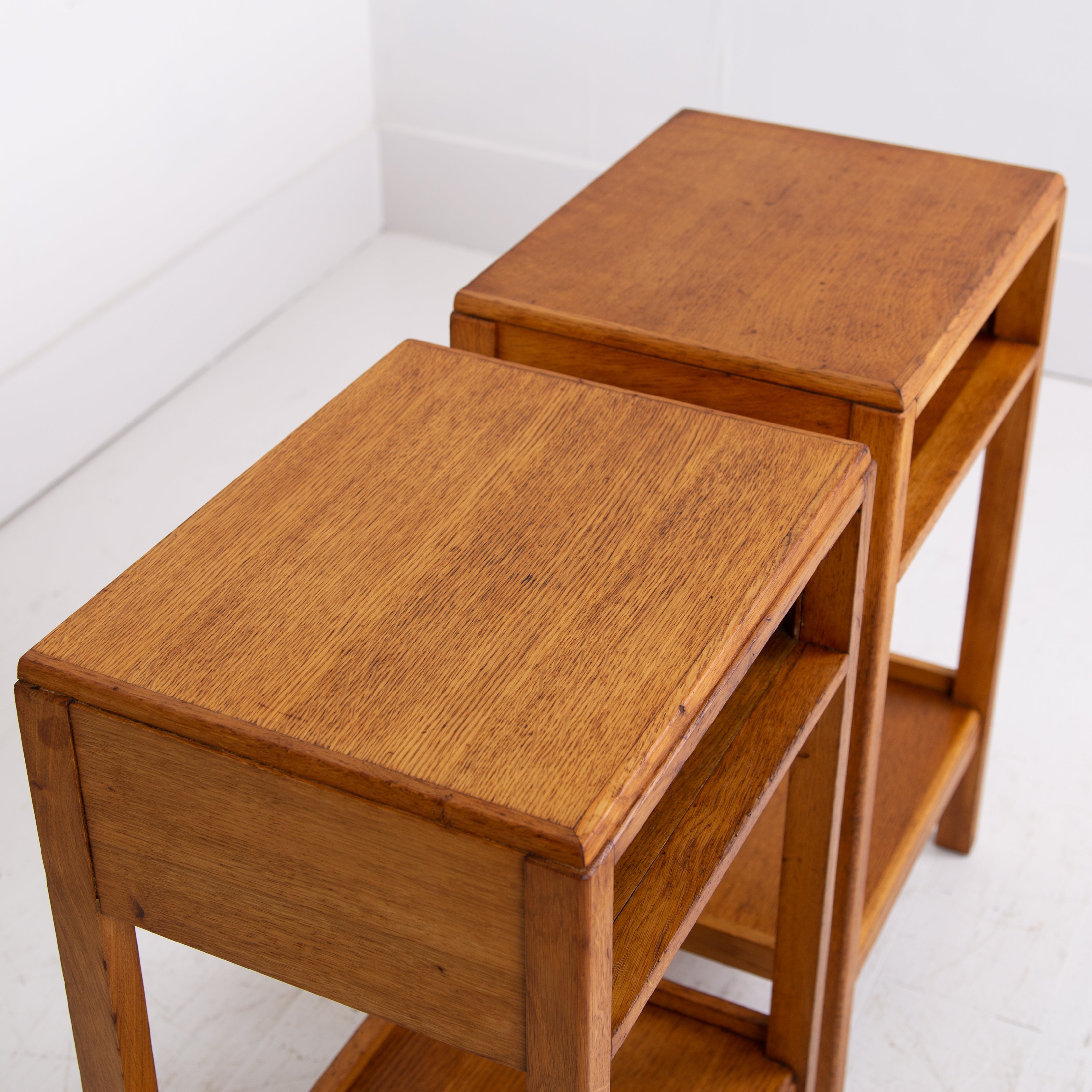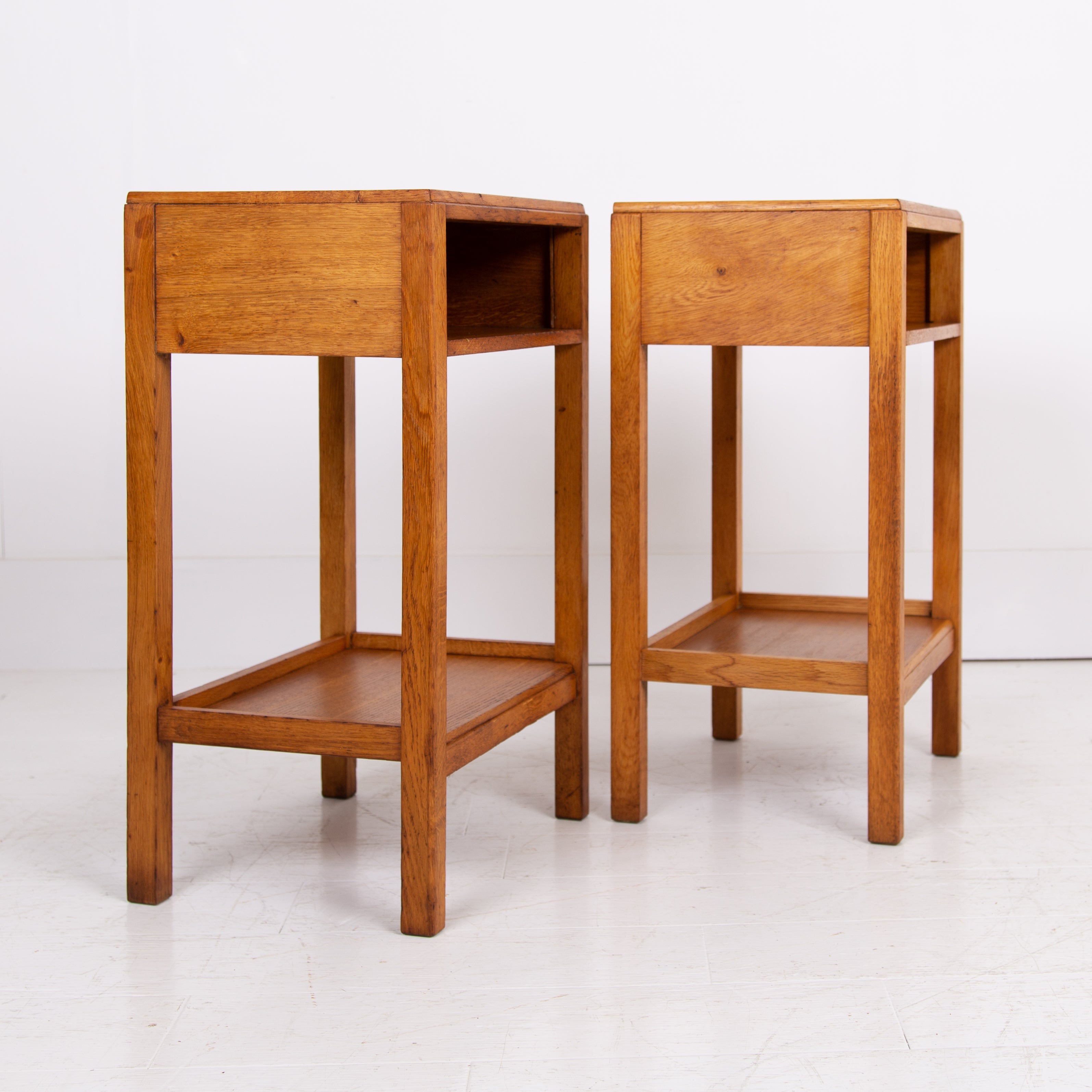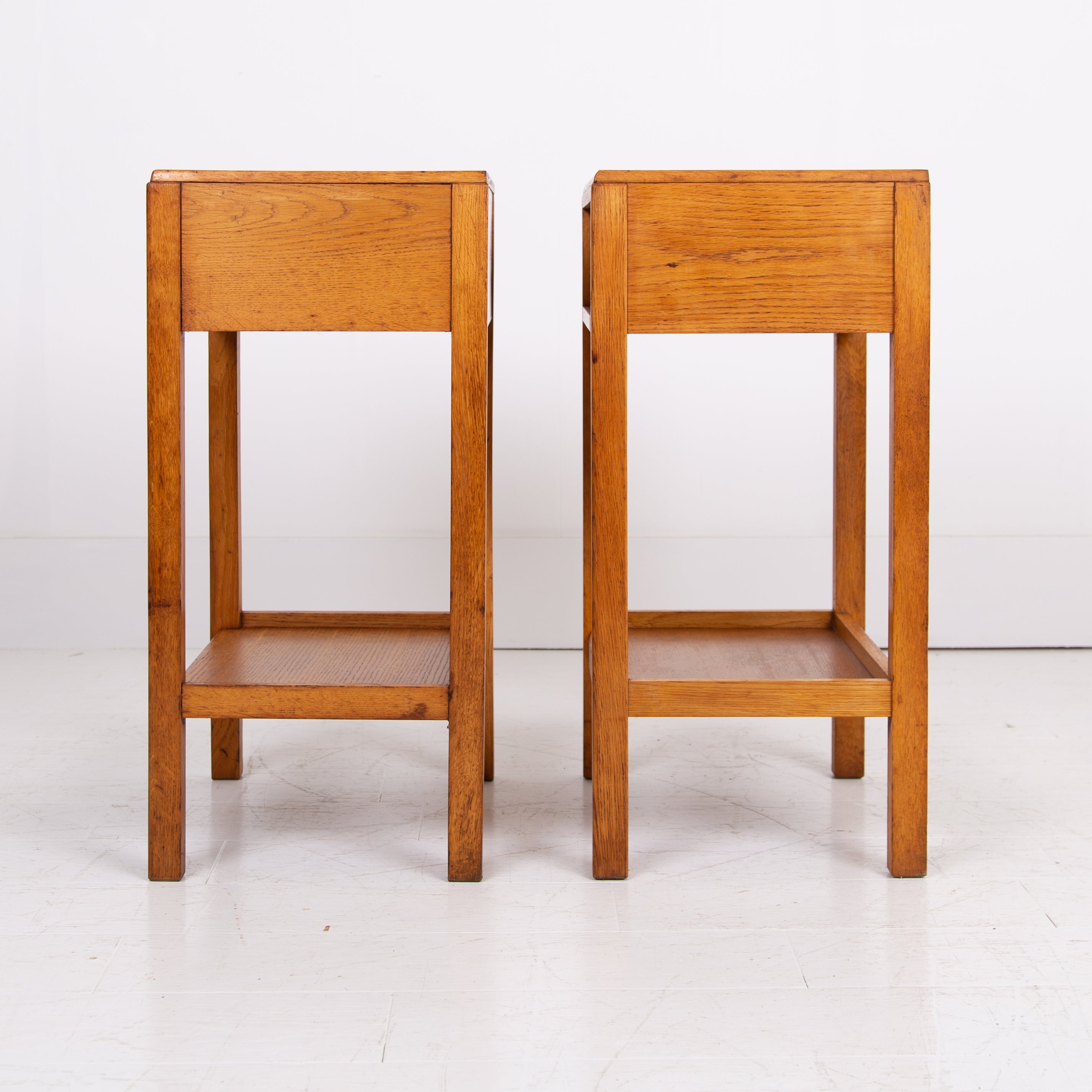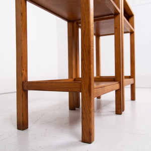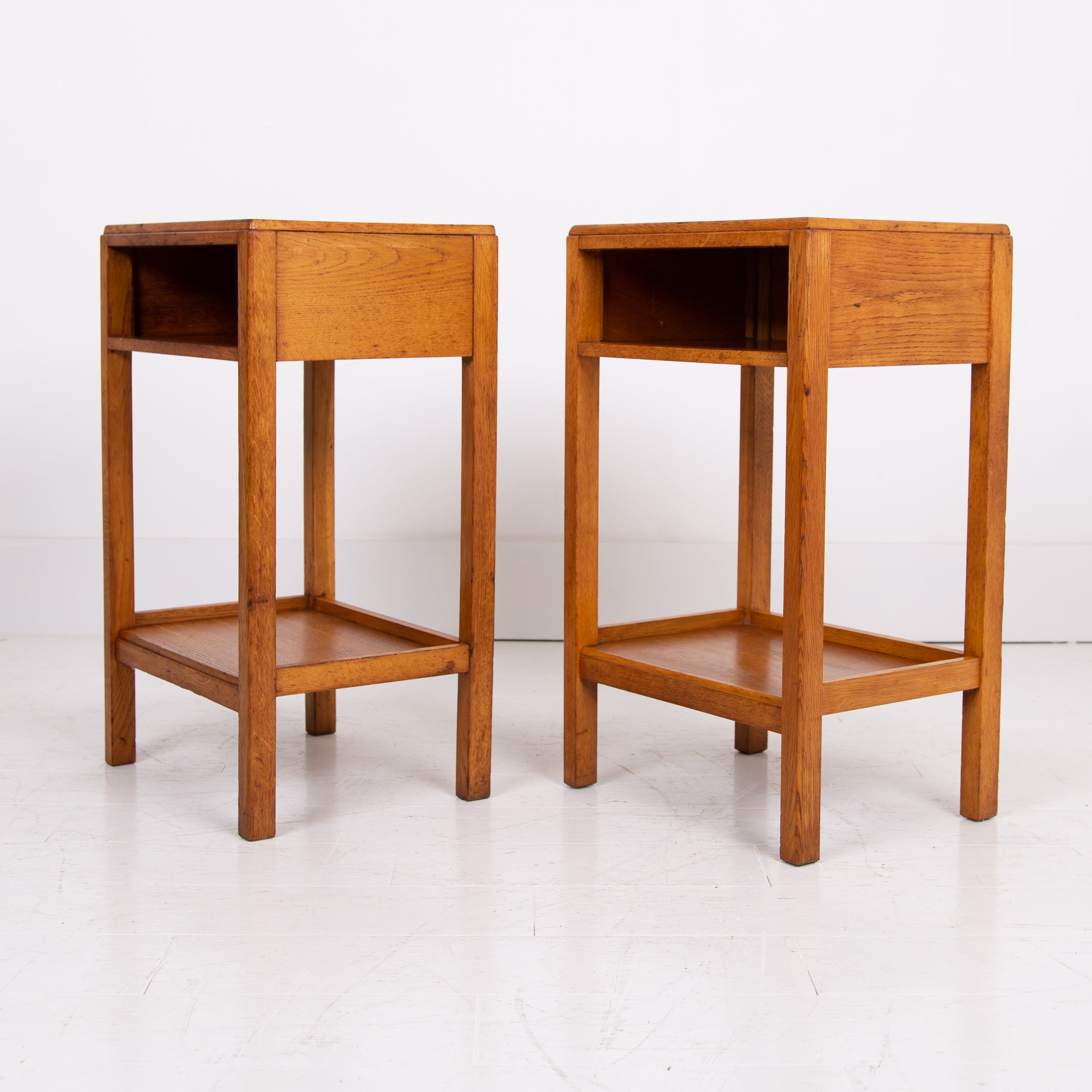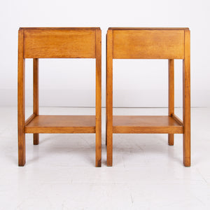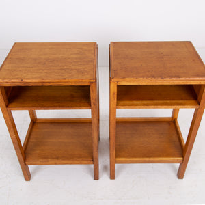 A very nice looking pair of oak side tables with AM stamp to the underside of one of them.