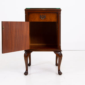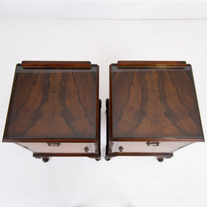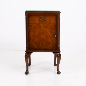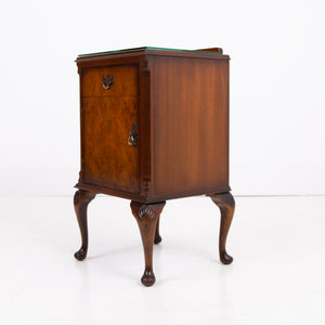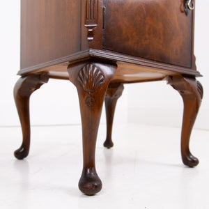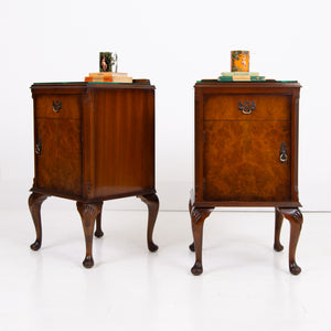 A super pair of antique figured walnut bedside cabinets. They were made in England, and they date from around the late 1930’s early 40s.