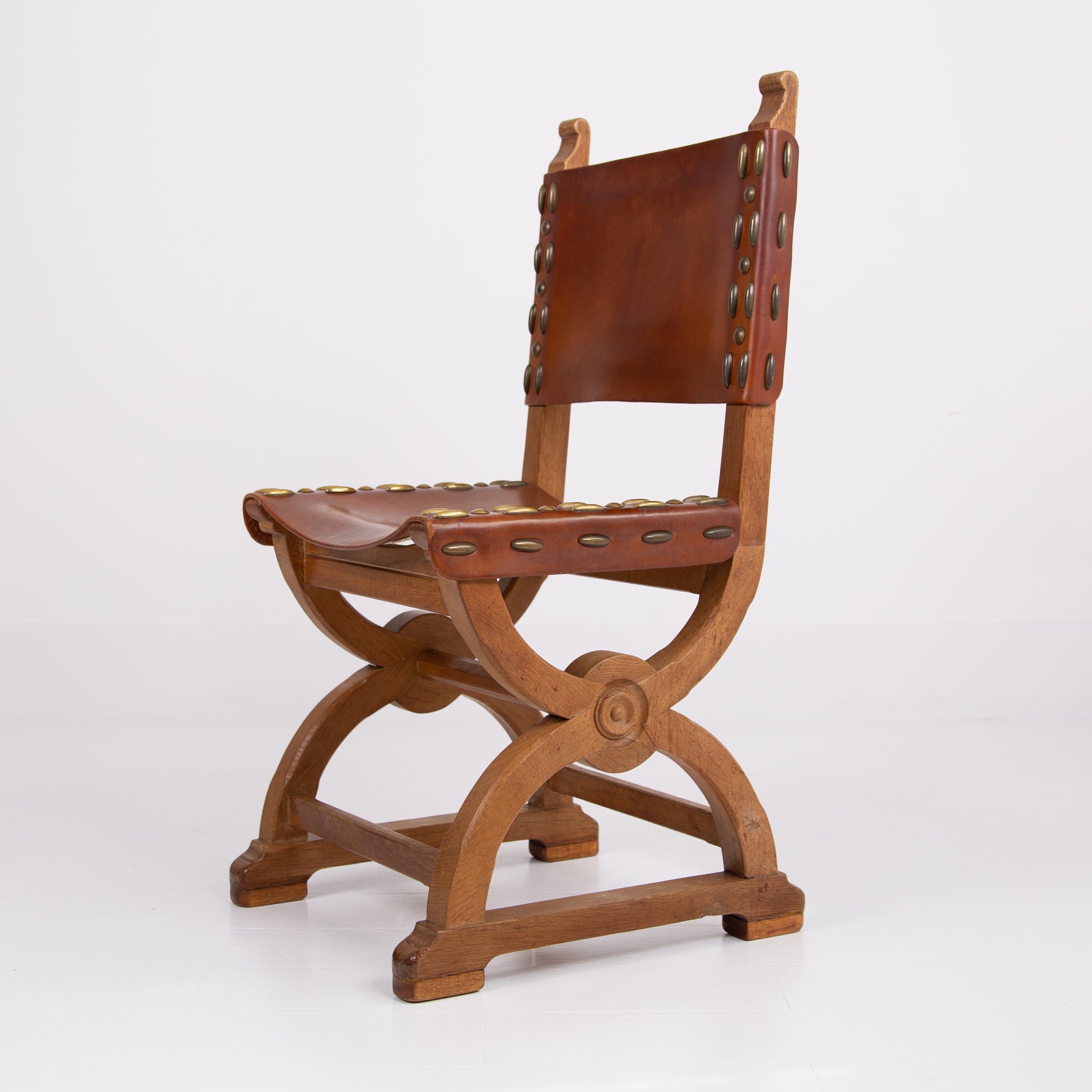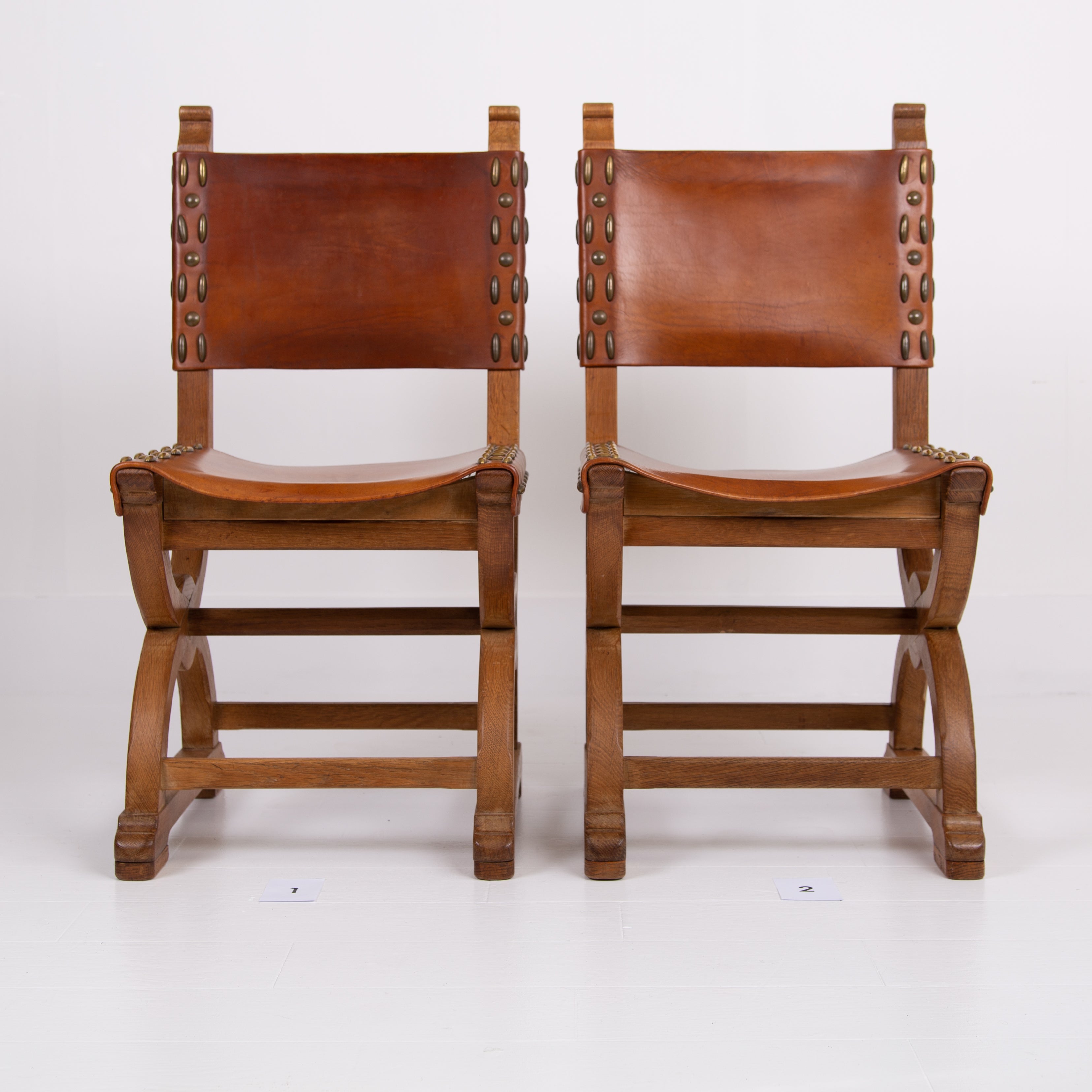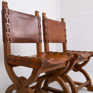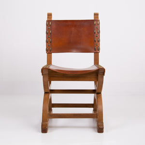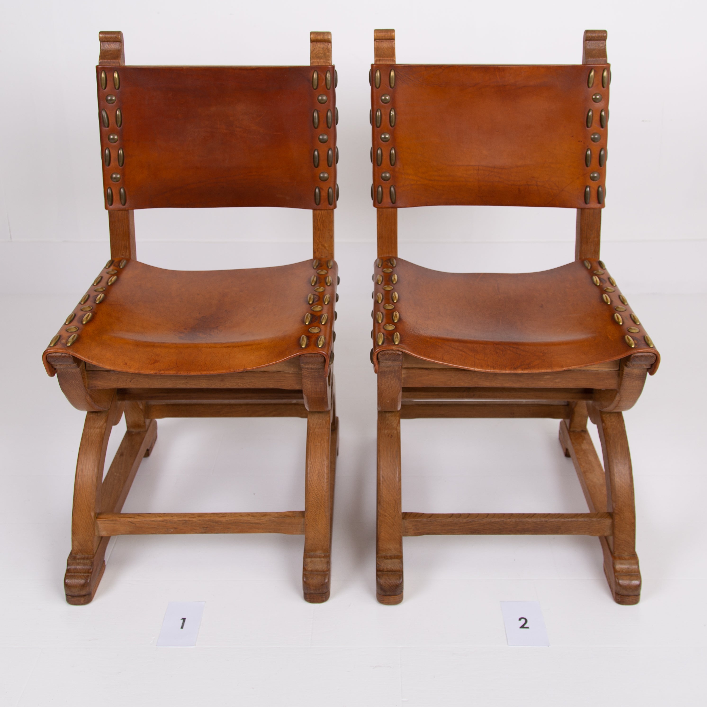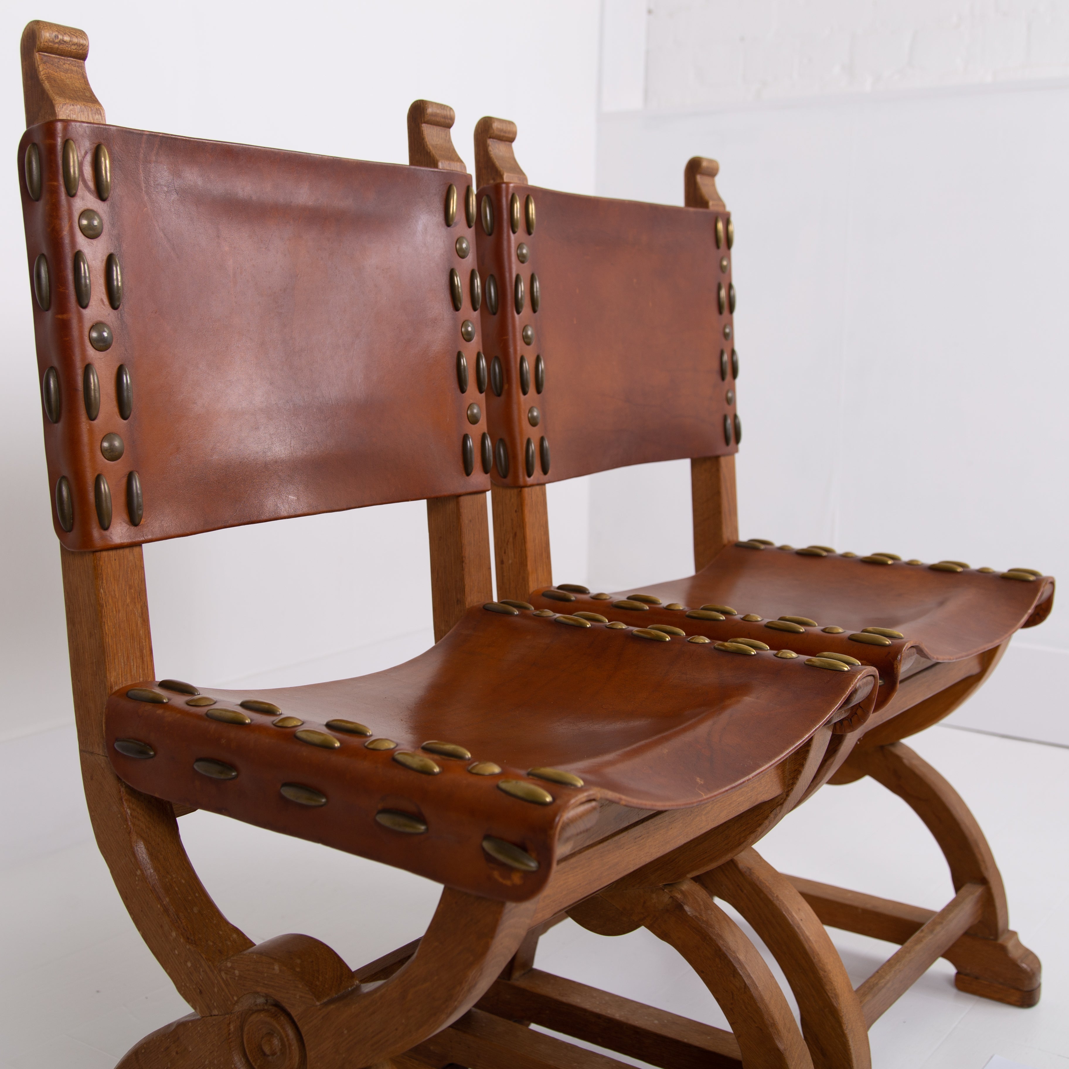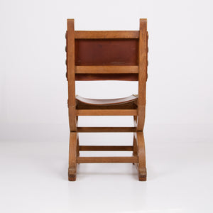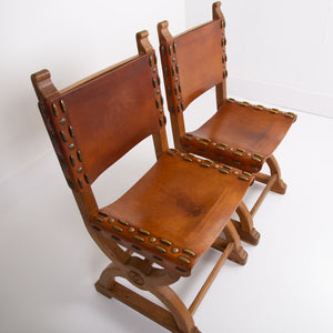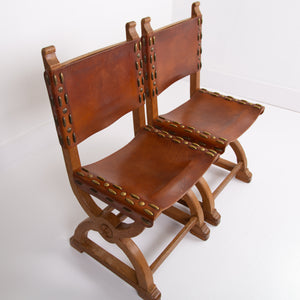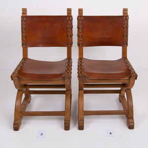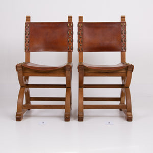 Pair Spanish Oak Brutalist Mid Century Chairs x2
