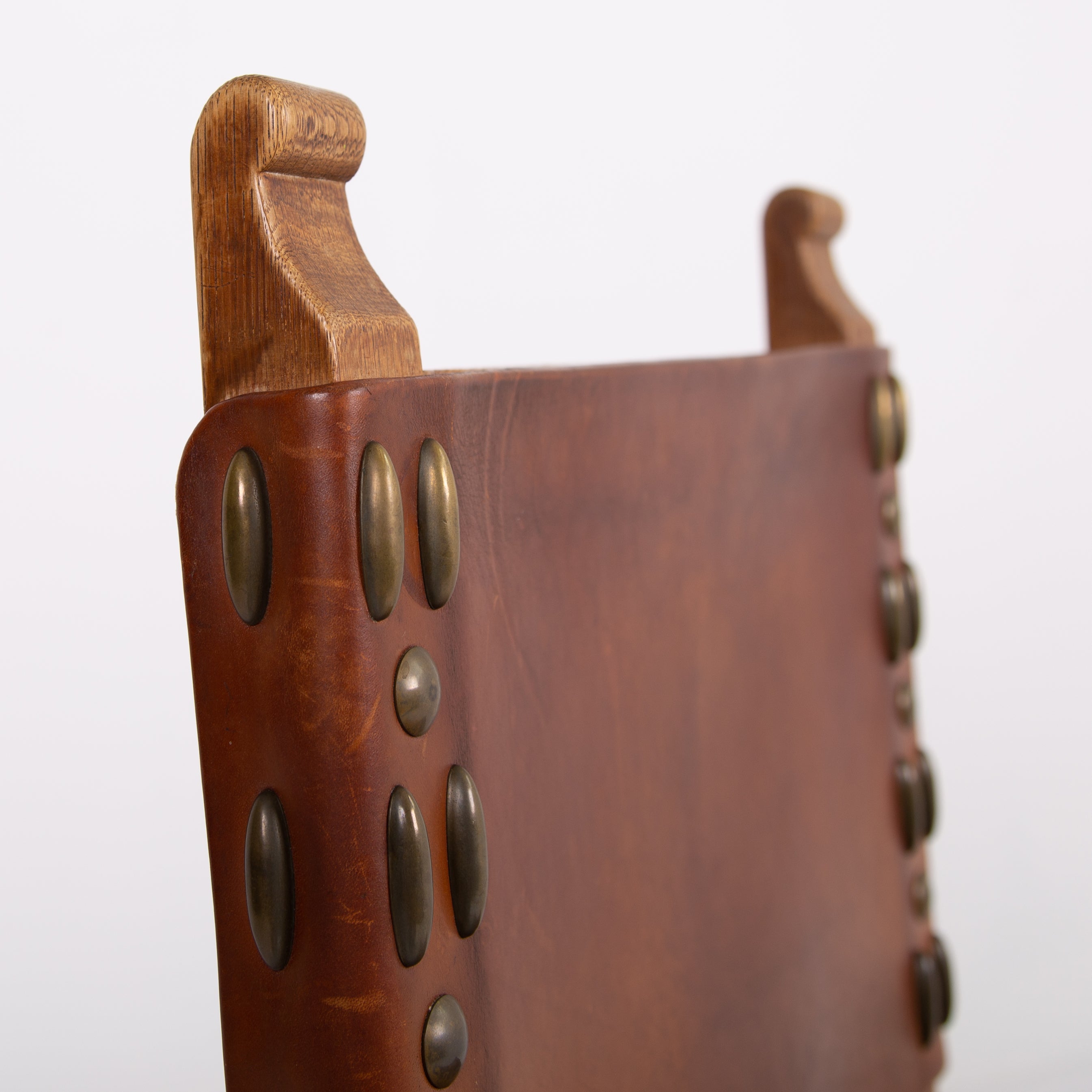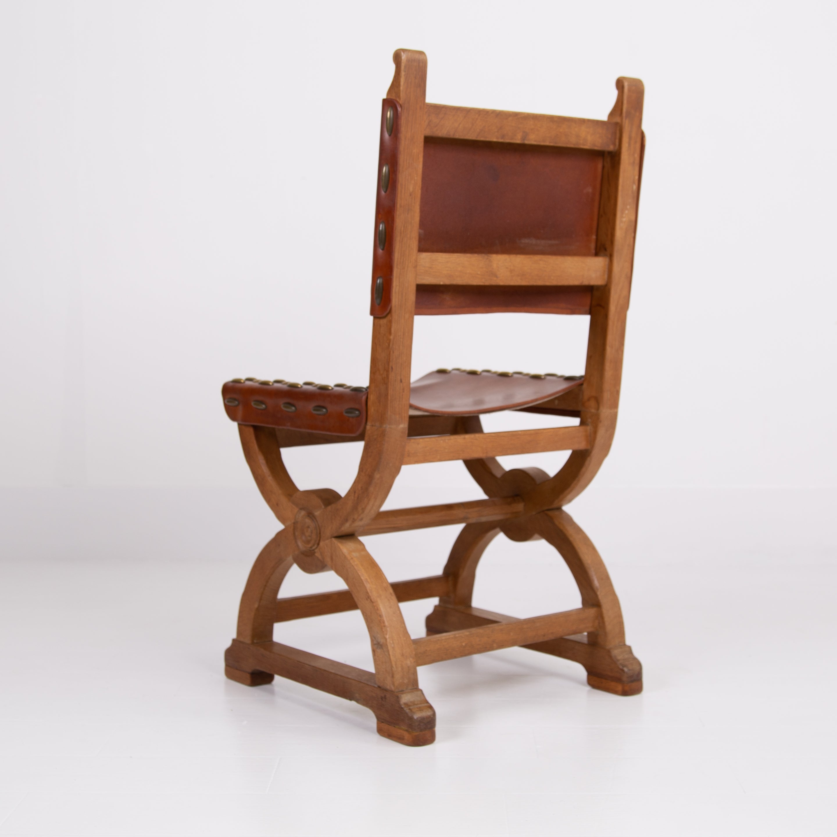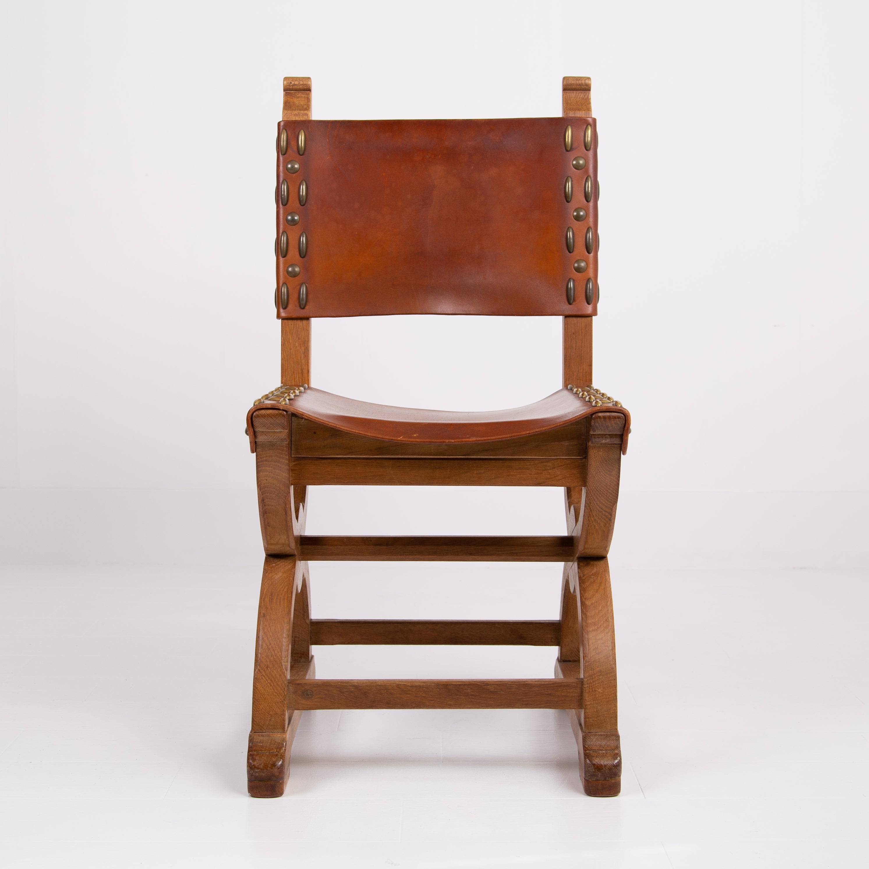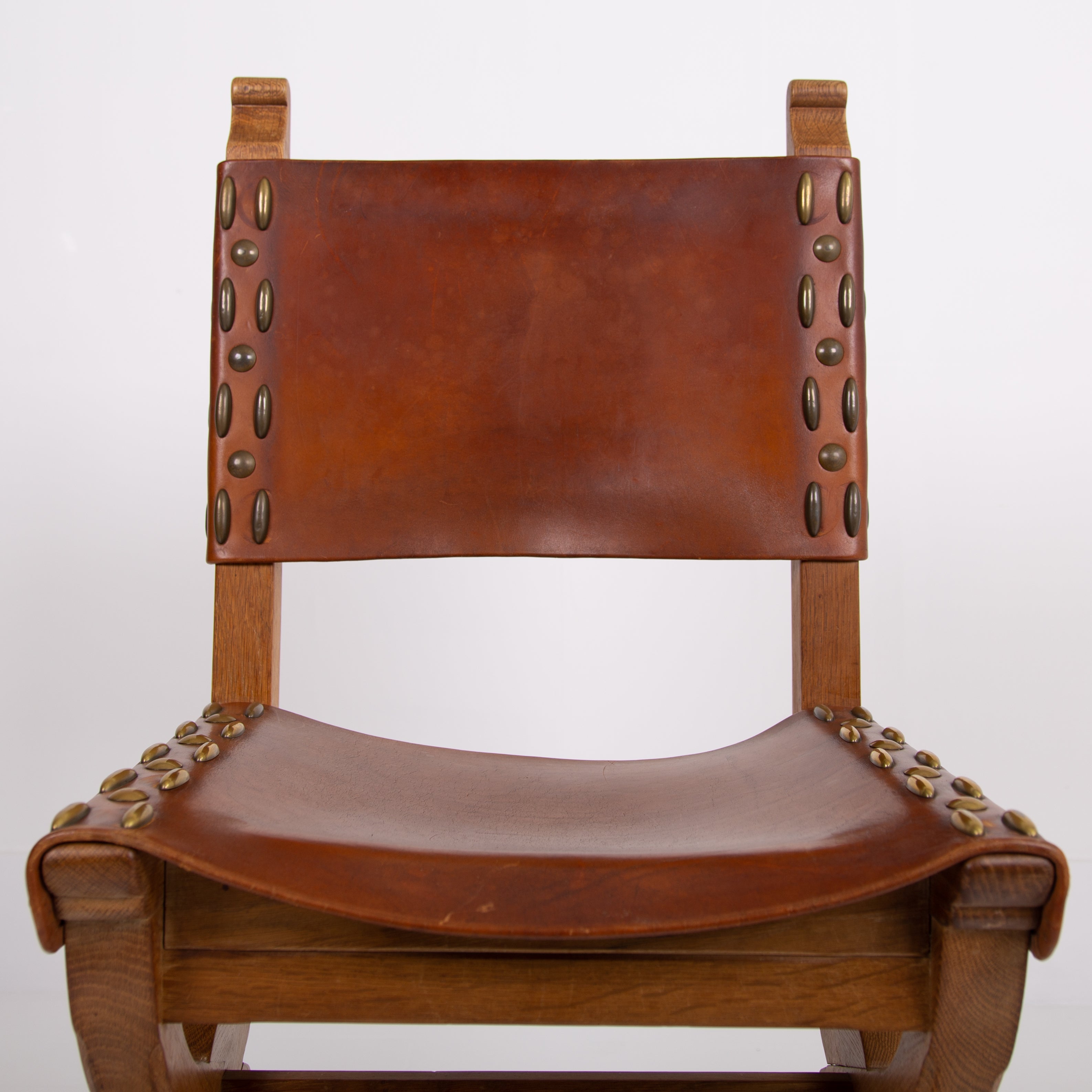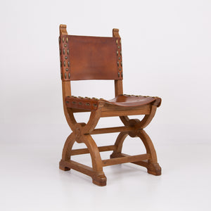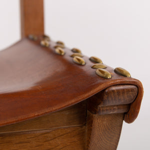 We have two pairs of these fabulous looking brutalist Mid Century Spanish oak and leather chairs which would work perfectly well in a hallway, at a desk, in a bedroom or maybe a garden room.