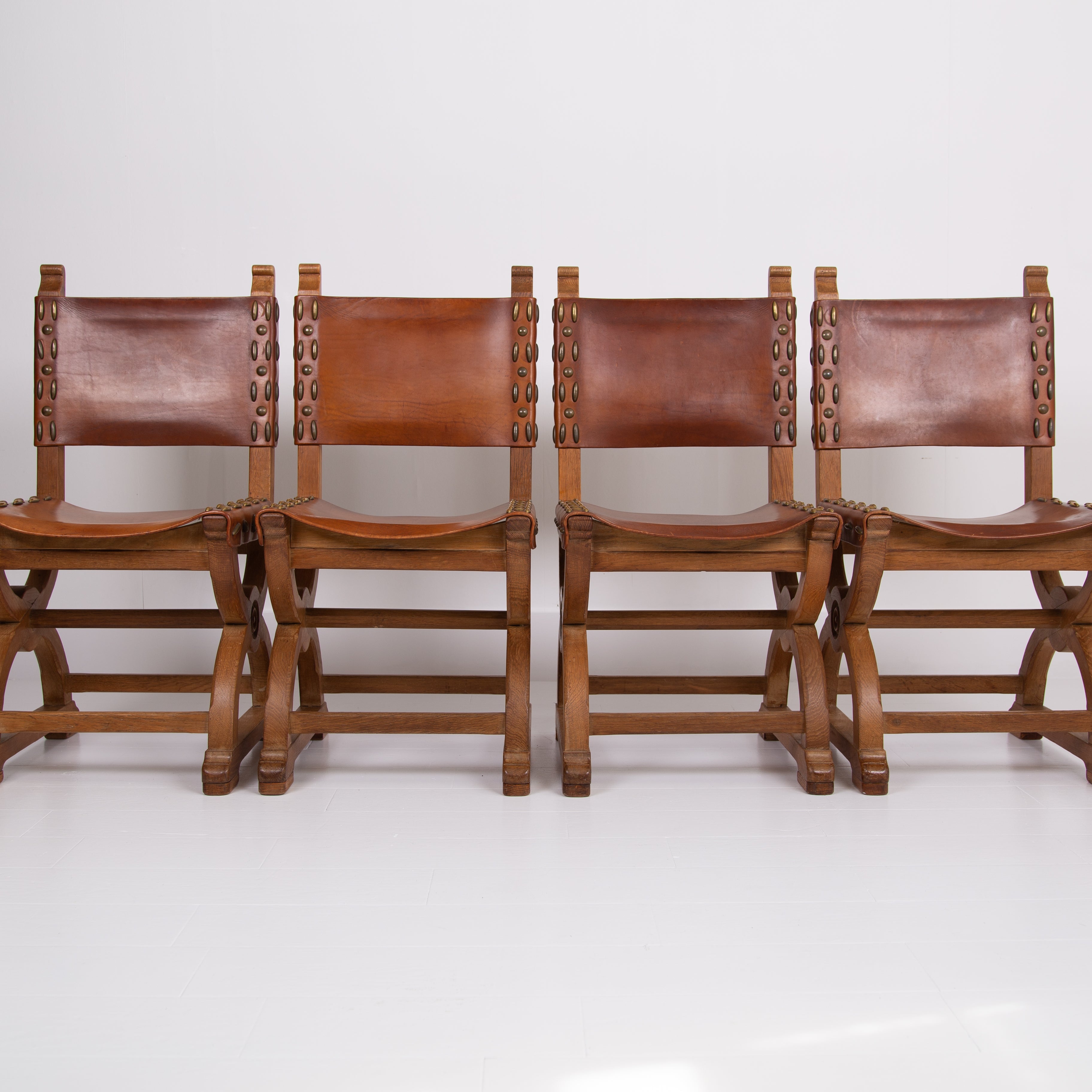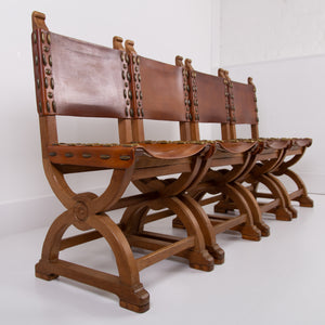 These are of super quality and design with well seasoned oak and high quality thick leather incorporated into the design. Condition is about right for the era - expect wear marks to the leather and frames with all chairs sitting strong, no nasty surprises and repair free.