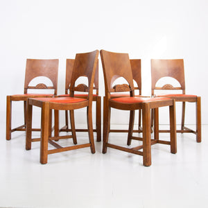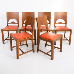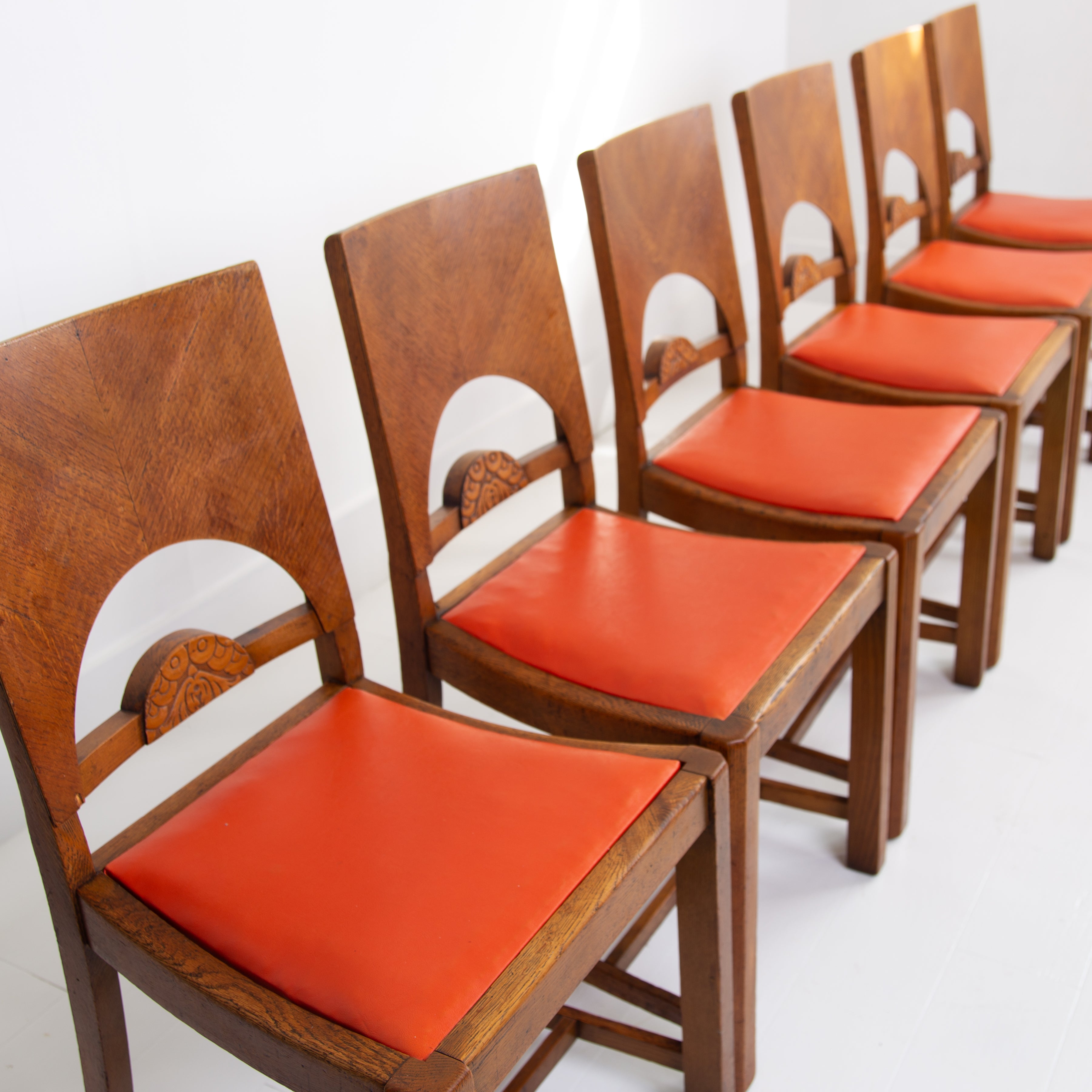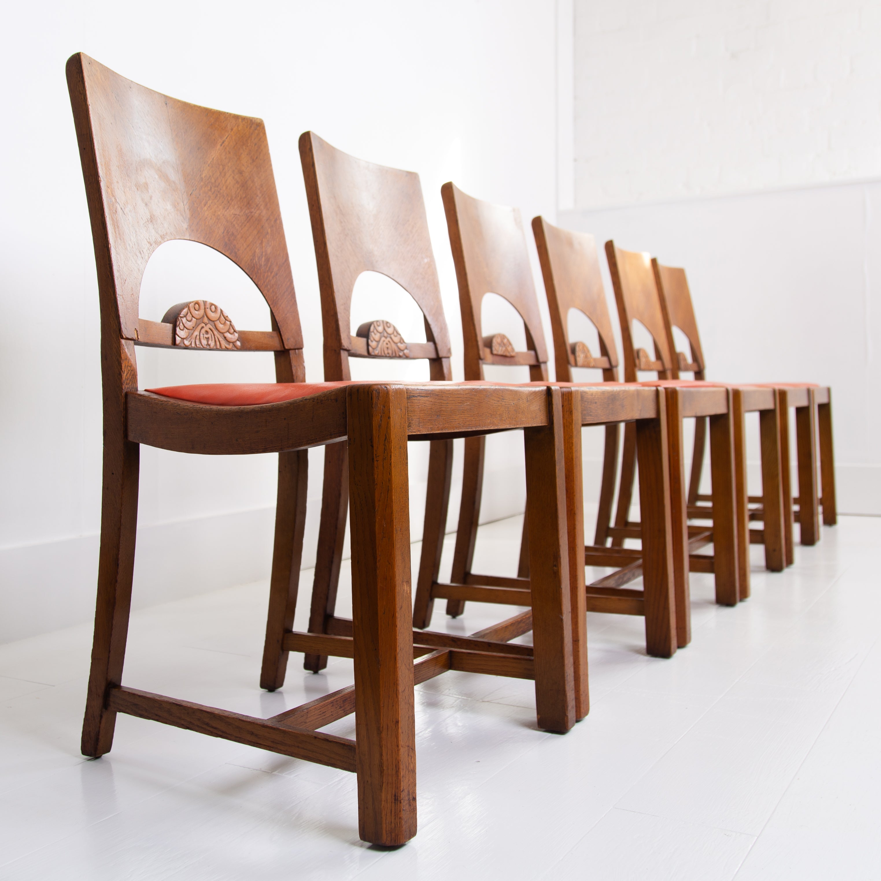 Set of 6 English Deco Oak Dining Chairs Gomme C1930