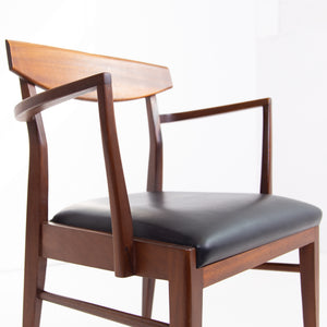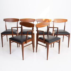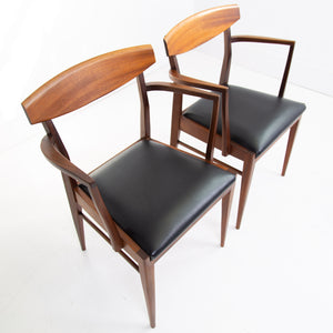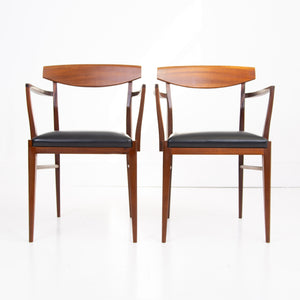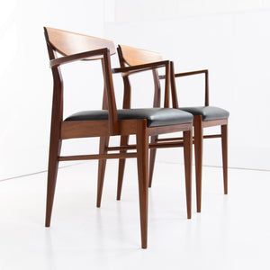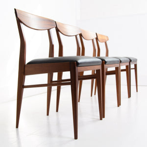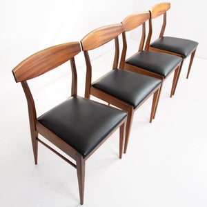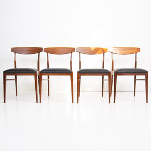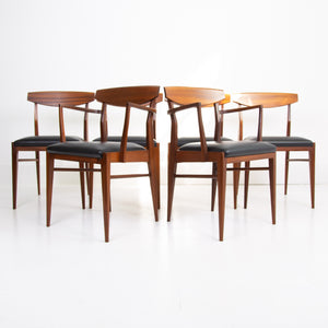 A rather fine set of a lesser seen design by McIntosh of Kirkcaldy, designed by Tom Robertson in the 1960s surviving in a super condition in a set of 4 plus 2 carvers, always a more desirable combination. We have some great lines on this set, the use of good quality timber and it goes without saying the build quality is first rate from McIntosh.