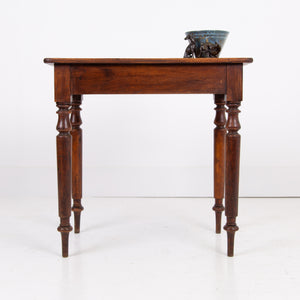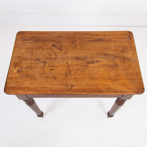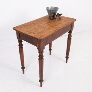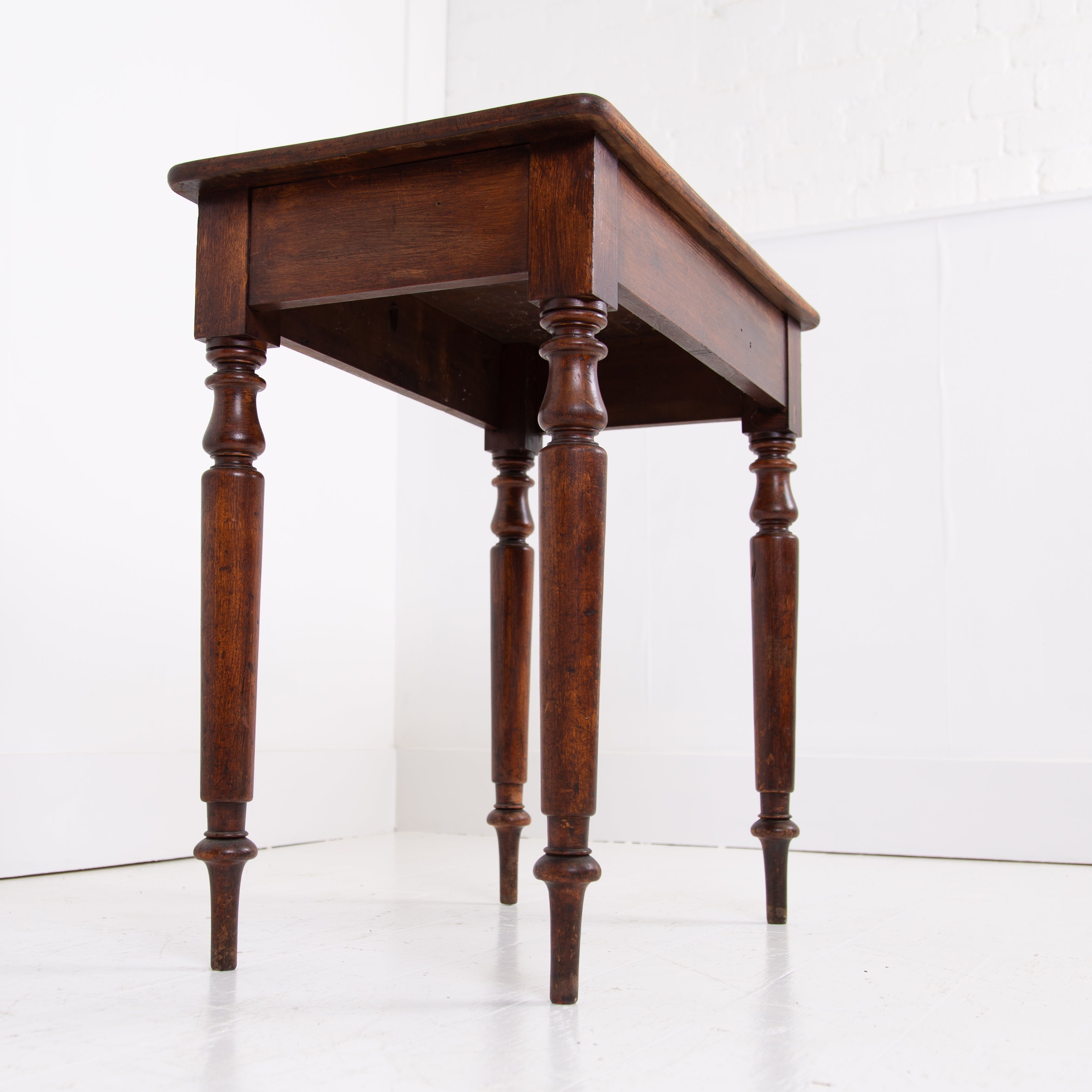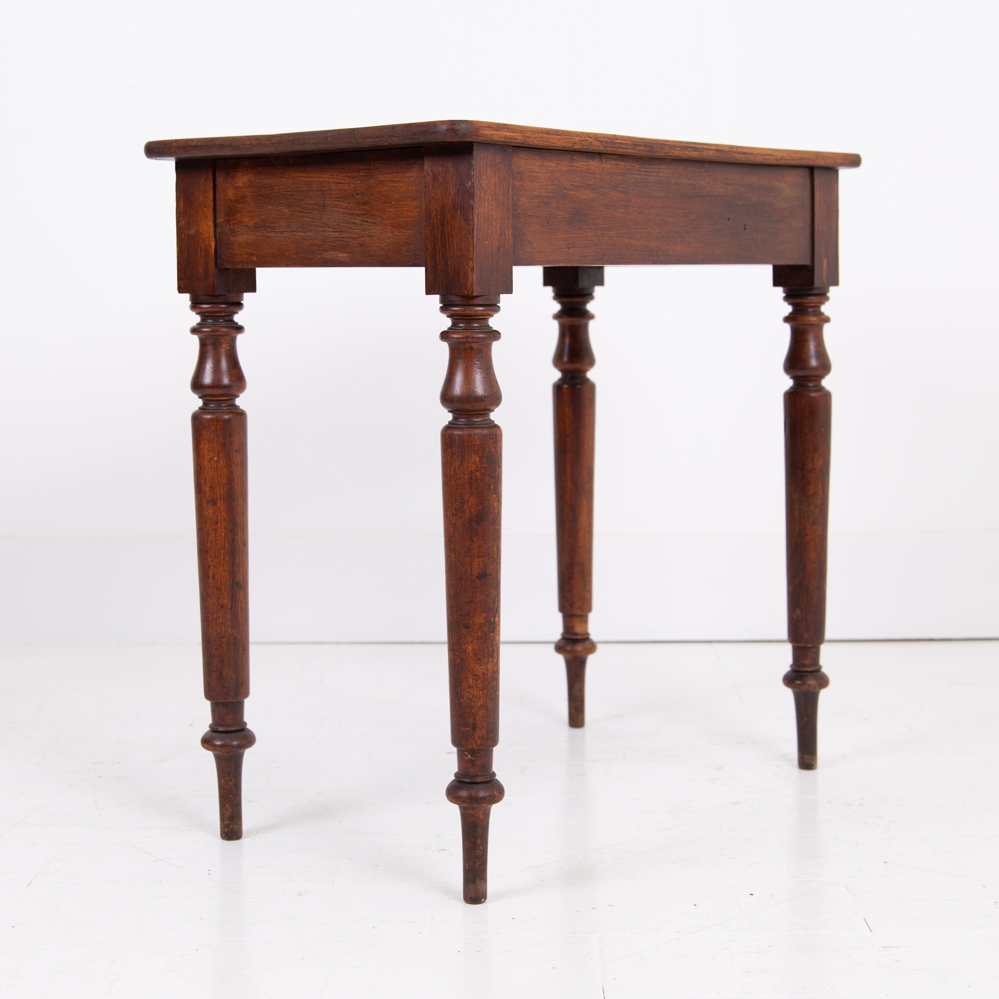 From the attic of a large Shropshire farmhouse we have a charming little side table with solid turned legs and oversailing top. Likely from the kitchen, larder or boot room, it sits well with day to day historic knocks and marks and is ready to place after a careful dust over.