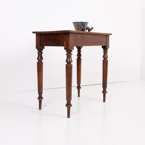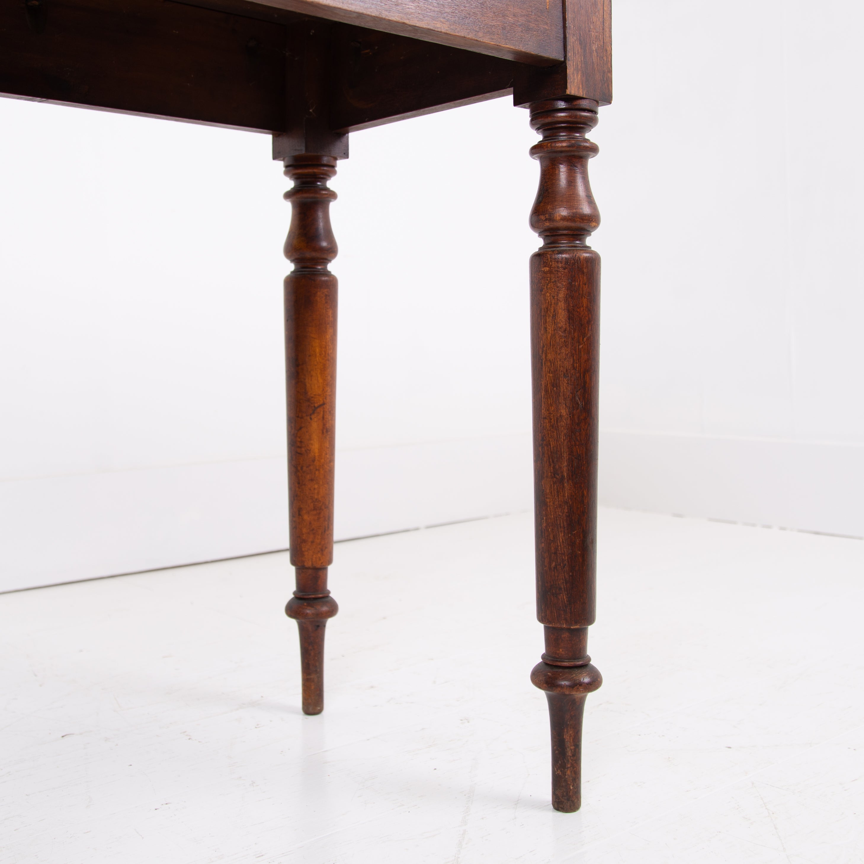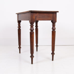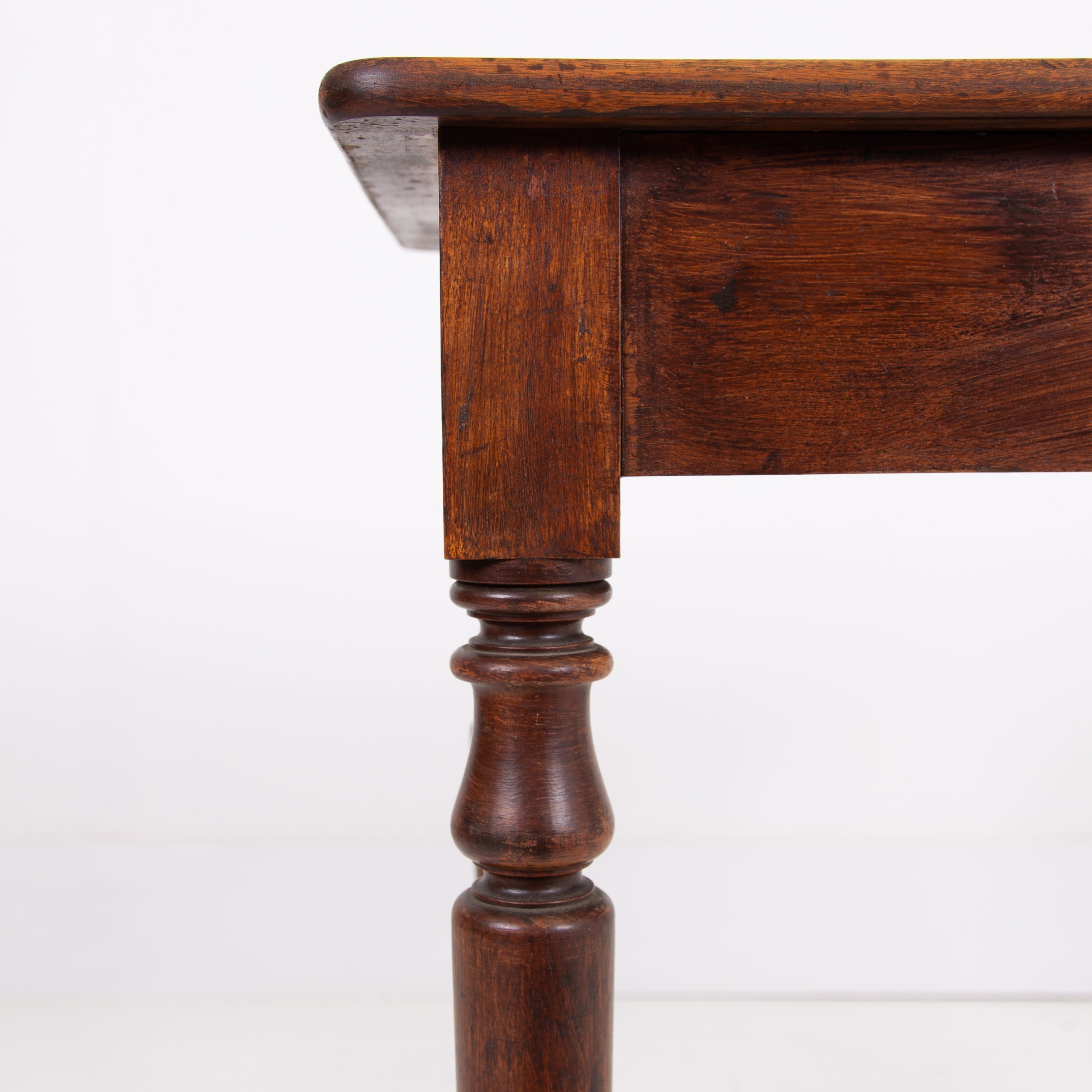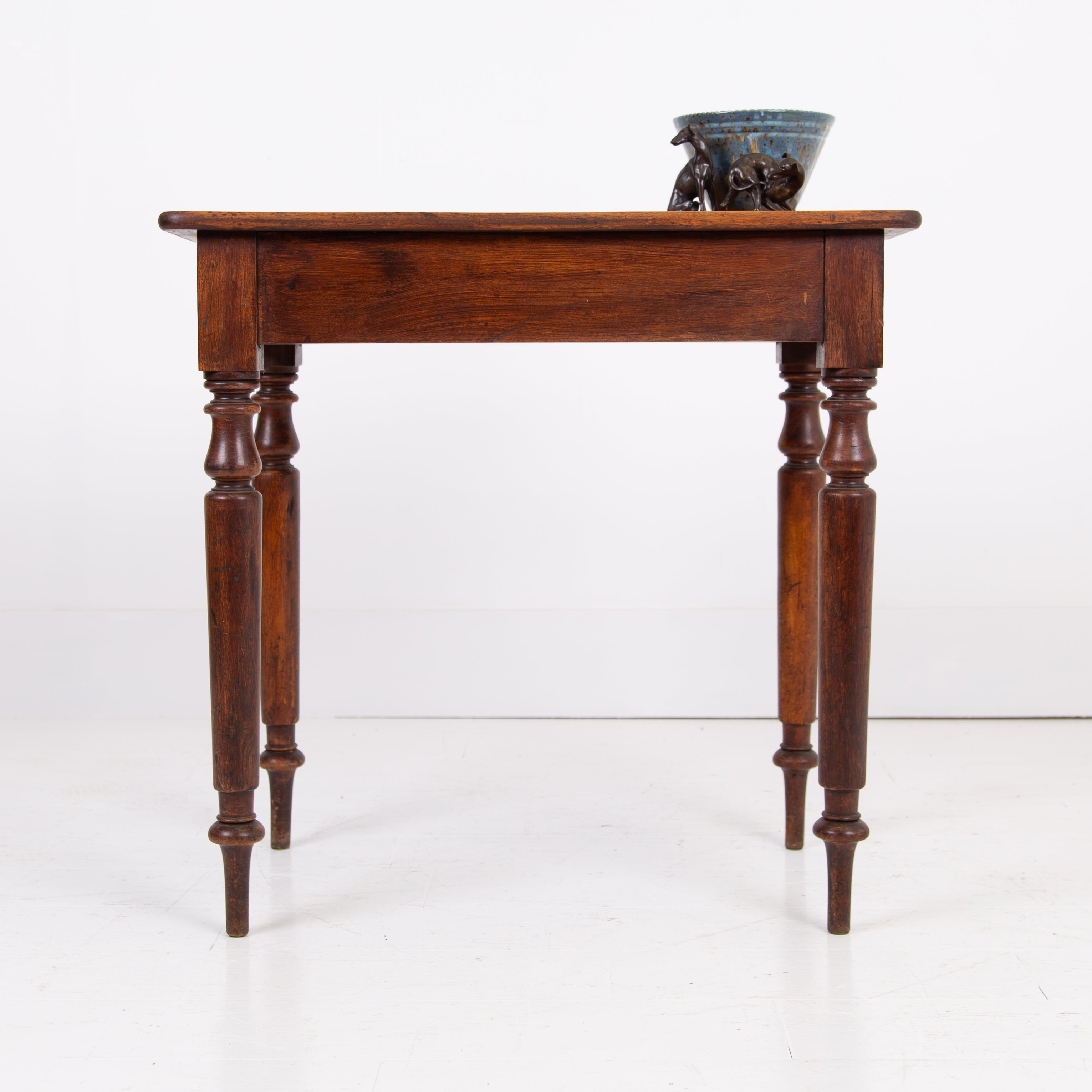 From the attic of a large Shropshire farmhouse we have a charming little side table with solid turned legs and oversailing top. Likely from the kitchen, larder or boot room, it sits well with day to day historic knocks and marks and is ready to place after a careful dust over.