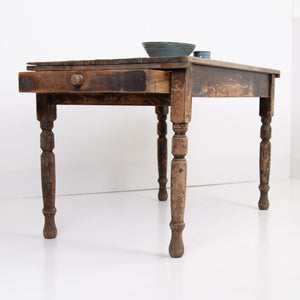 This one sits as found apart from a light dust and what a wonderful and decorative aged finish there is to those well turned legs and drawer front - a real unmolested example of Victorian country kitchen furniture.