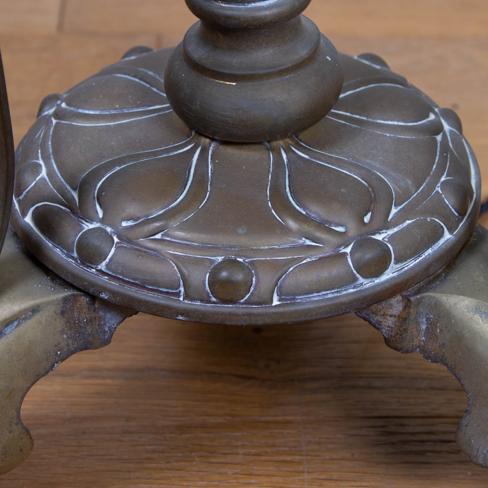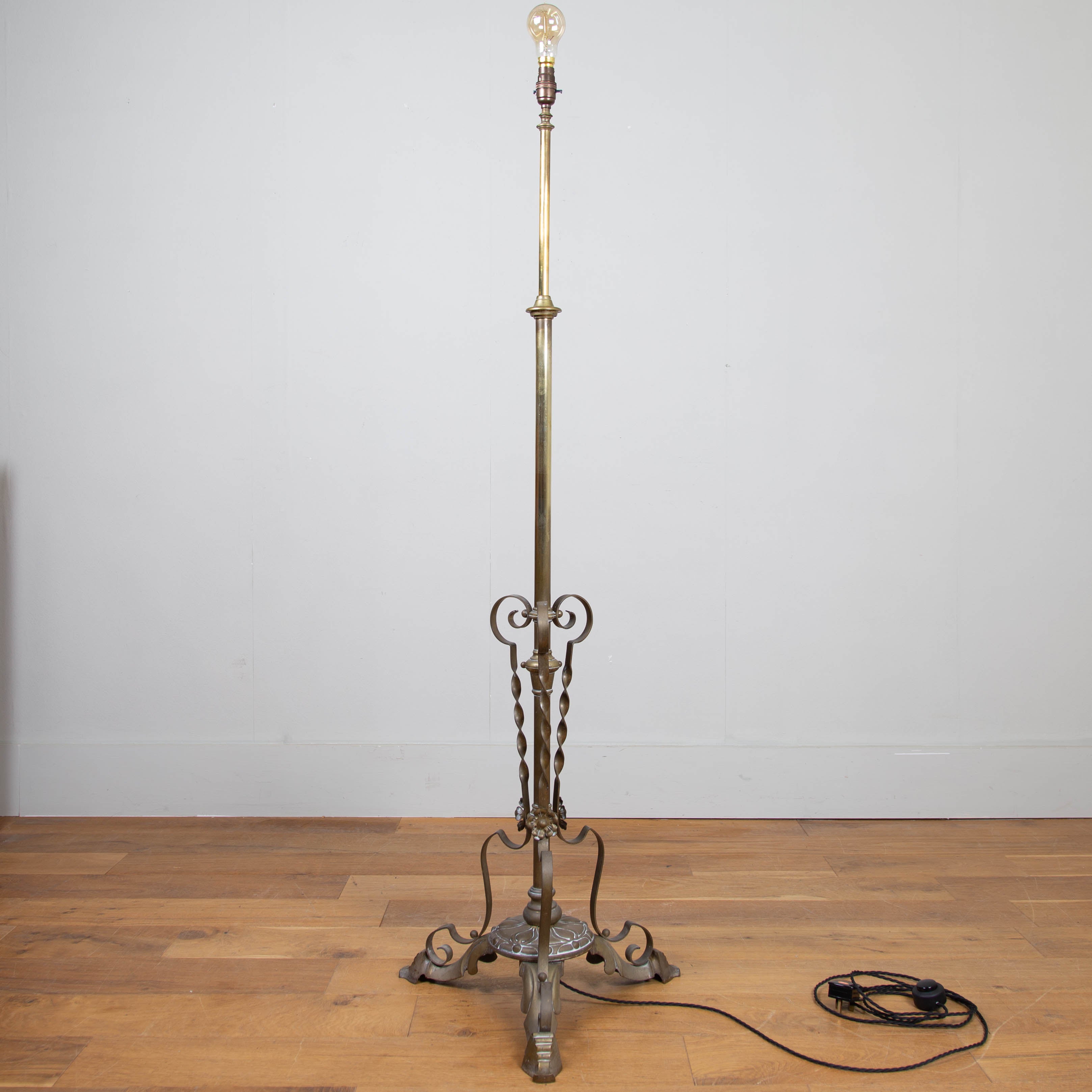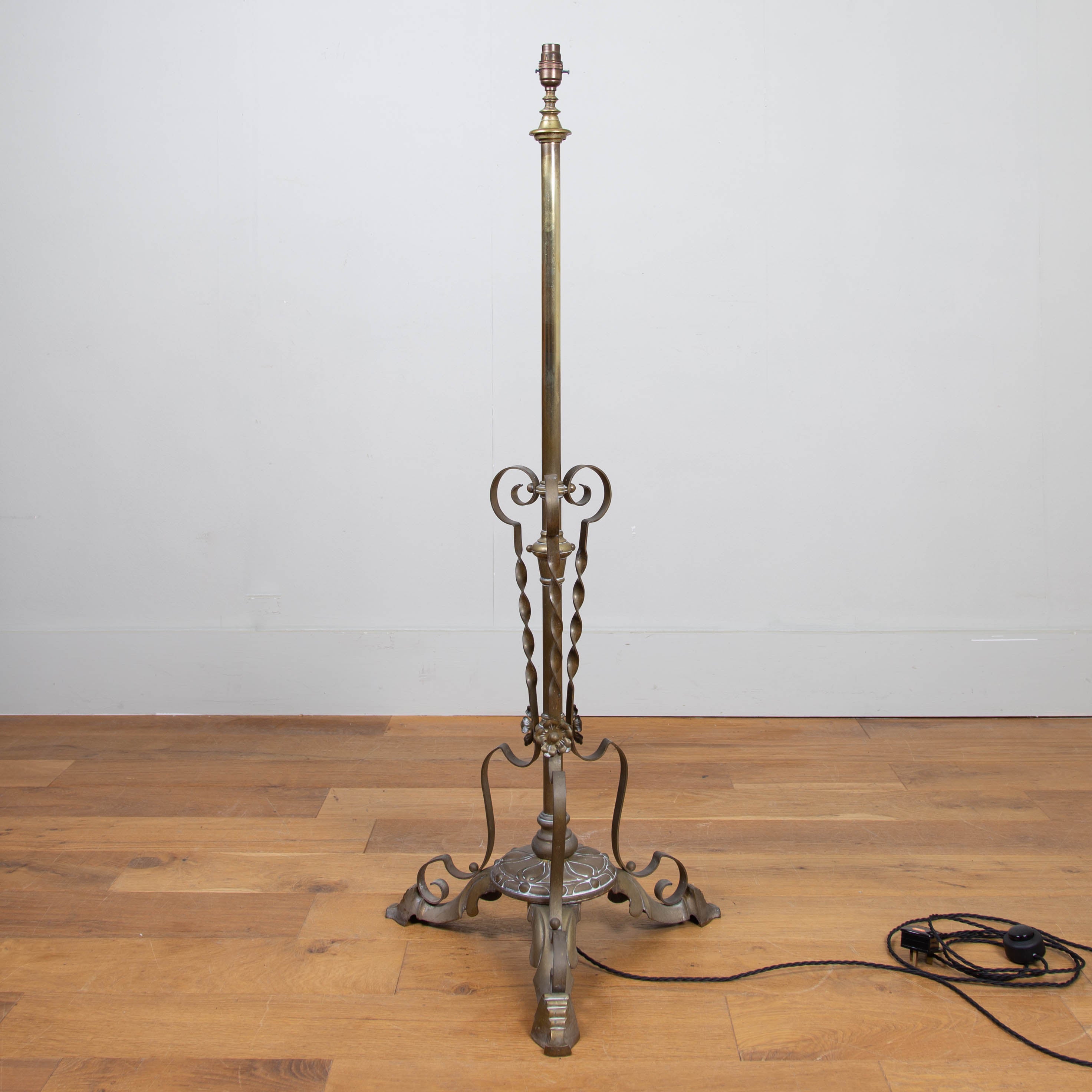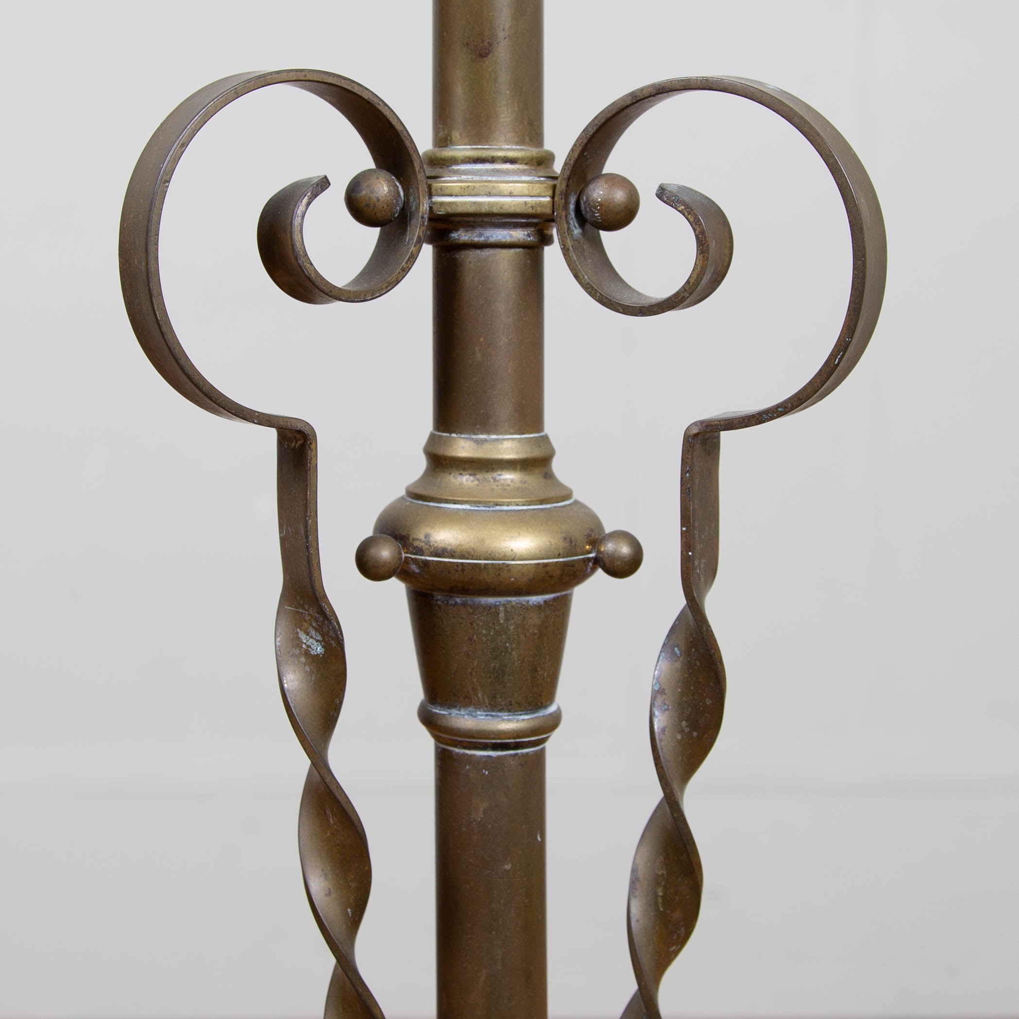 Back from our electricals partners so we have new twisted period rewire, foot pad on and off switch and a full PAT test. The brass floor lamp is sitting in a nice tarnished condition and sits well on its ornate base. If you desire shiny brass then a quick polish over would do the trick.