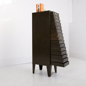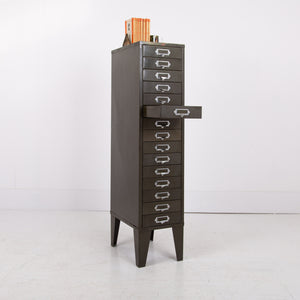 Vintage Industrial Metal 15 Drawer Office Cabinet C1940s