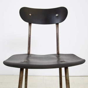 A rather attractive workshop stool which survives from around the 1930s with lovely wear to the slender tubular steel frame and grained Rexine top. Love the unusual triangle base and the simple lines on this one.