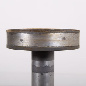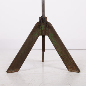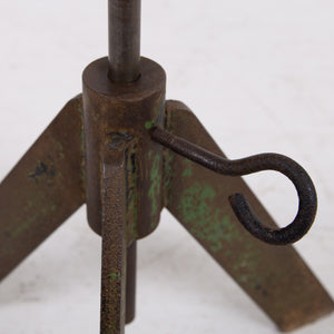 We just love these potter’s banding wheels which act as perfect side tables in so many spaces. This one possesses adjustable height by way of a turn screw and the top moves around and is great for placing a cup of tea, a glass of wine or maybe a favourite vase. This one has original angular green legs and sits with plenty of genuine patina and wear.