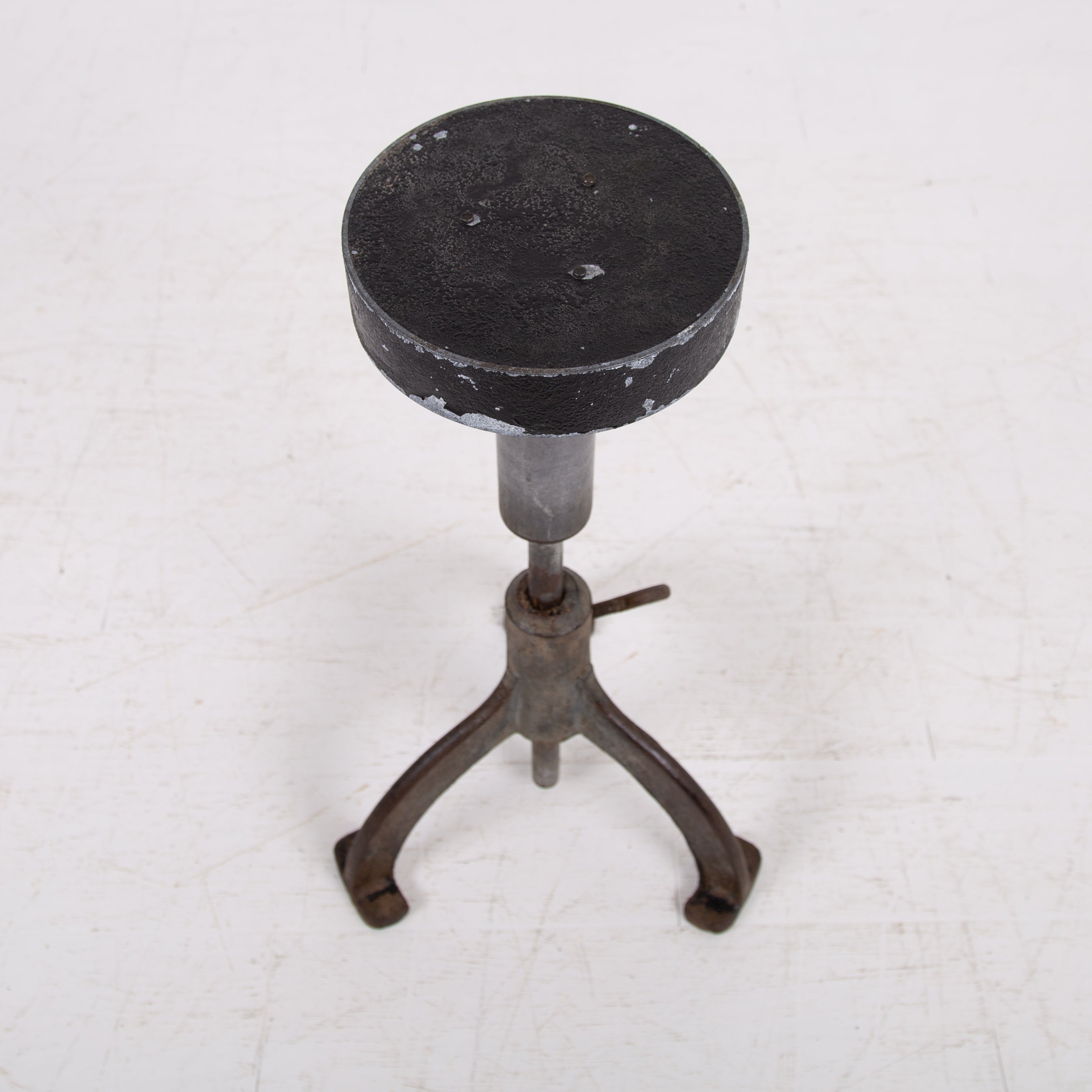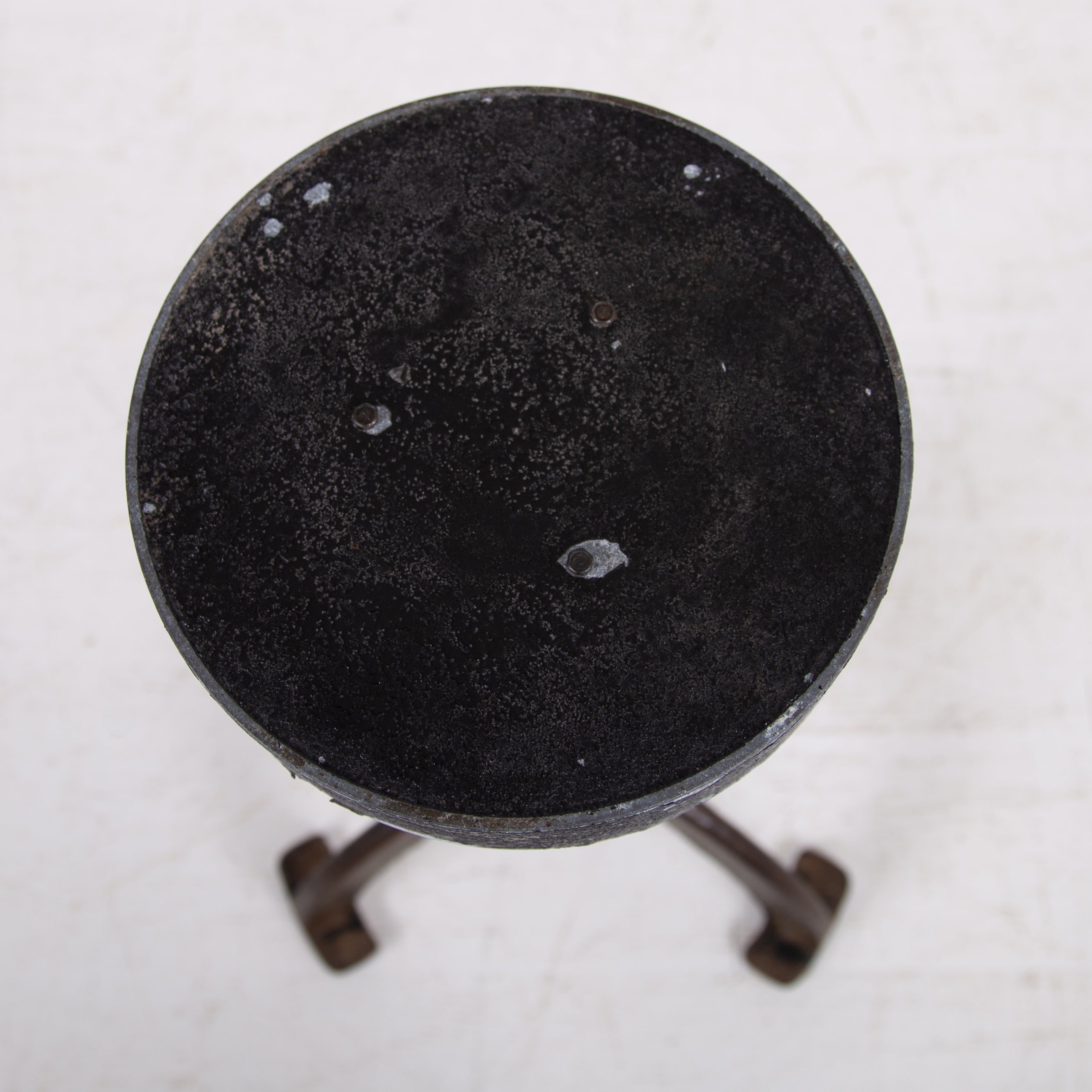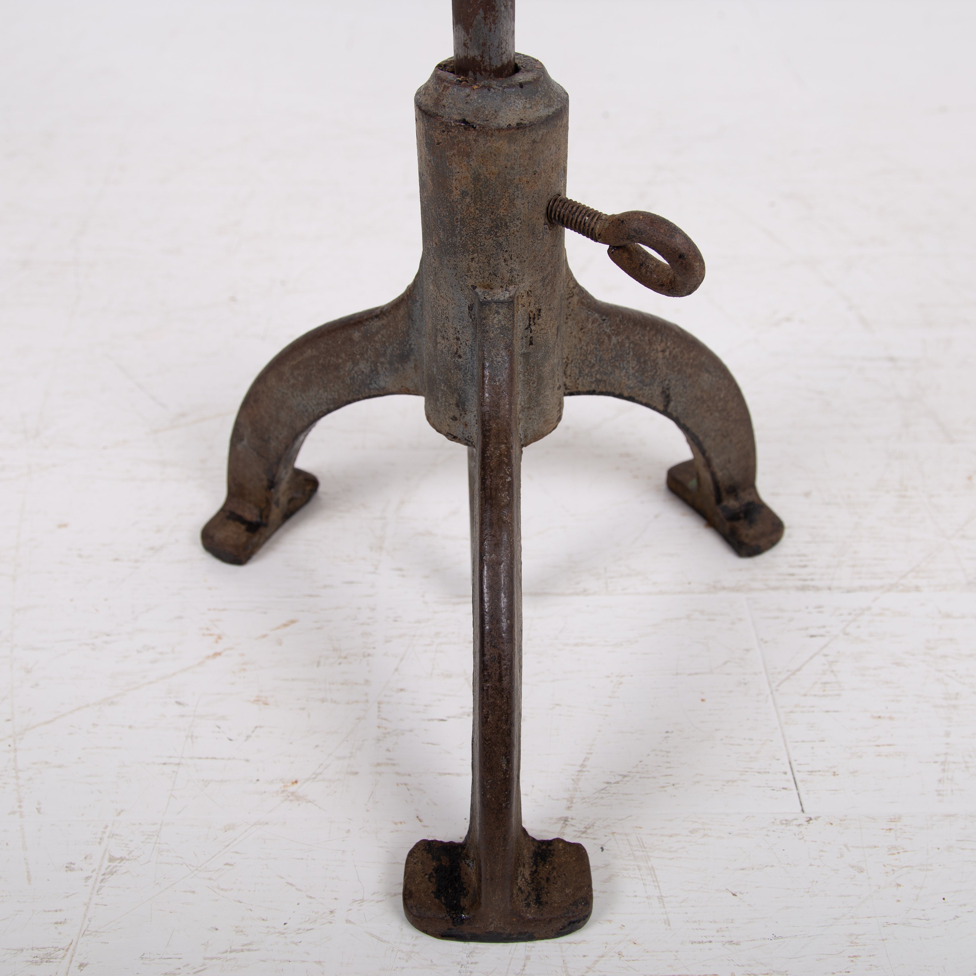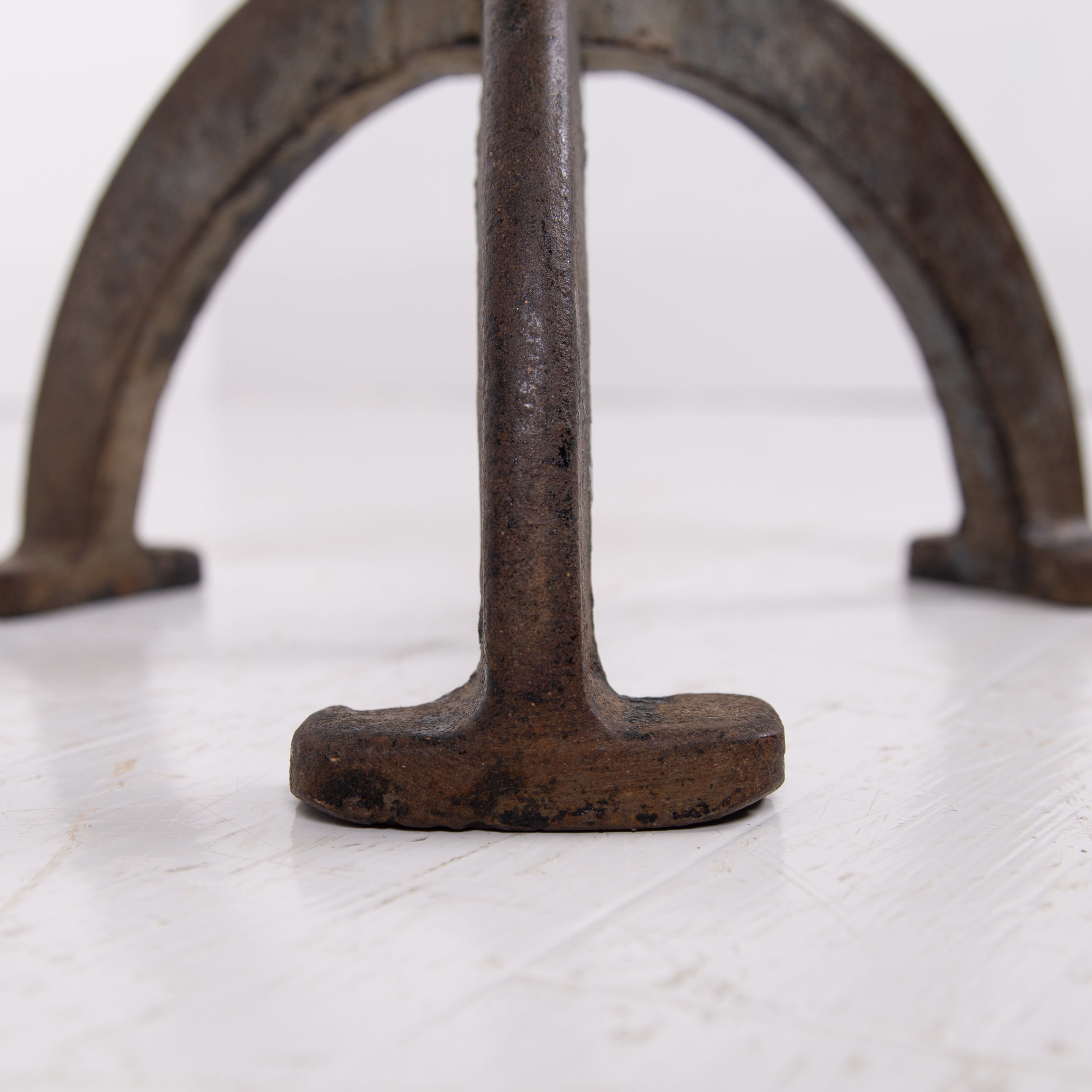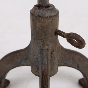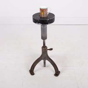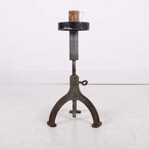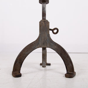We just love these potters banding wheels which act as perfect side tables in so many spaces. This one possesses adjustable height by way of a turn screw and the top moves around and is great for placing a cup of tea, a glass of wine or maybe a favourite vase. This one has attractive shaped iron legs with feet and sits with plenty of genuine patina and wear.